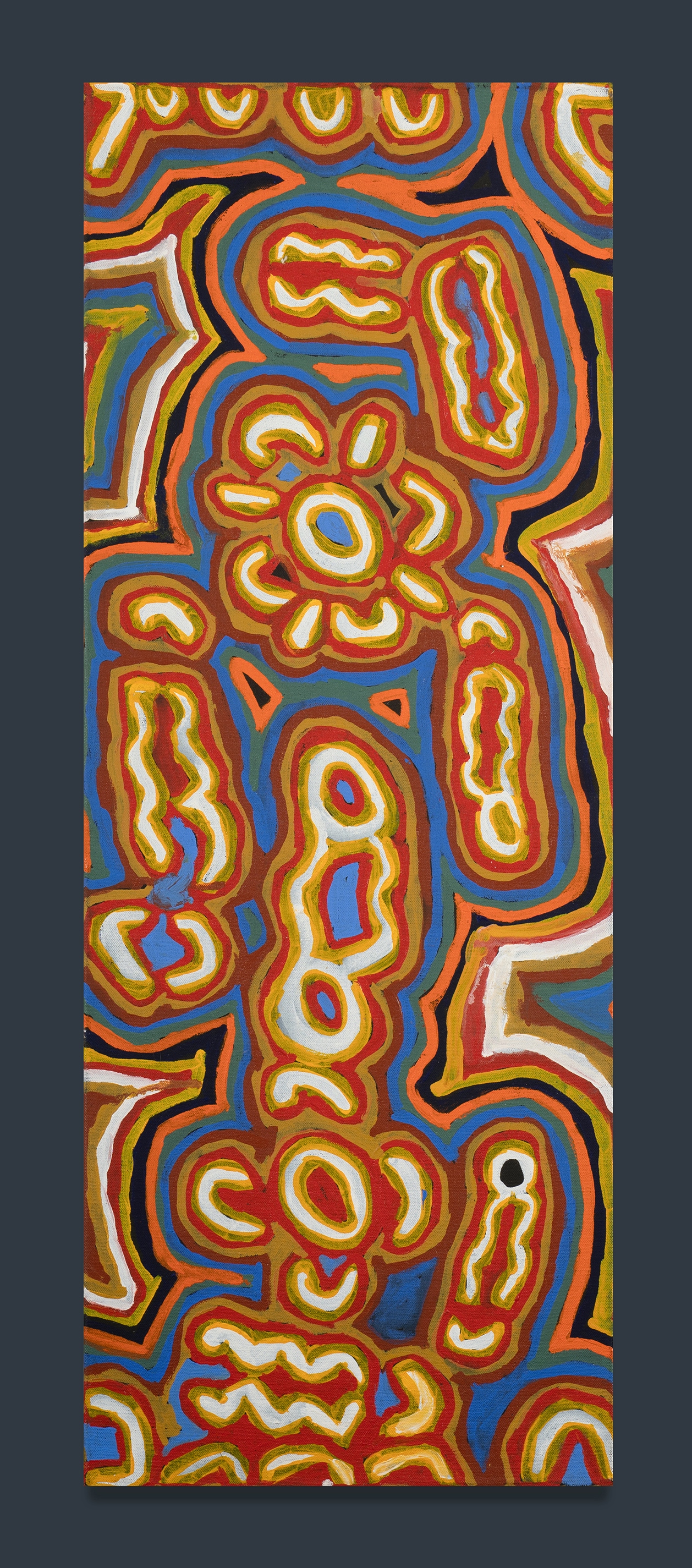 NAPALJARRI, Elizabeth Gordon (Aboriginal b.1954) 'Tjumundora,' 2006. Signed & inscribed 'Lizzie Gordon, 1/06' verso. Provenance: Warlayirti Artists; Short Street Gallery, Broome; private collection, Sydney. Acrylic on Linen 80x30cmEstimate $300-500