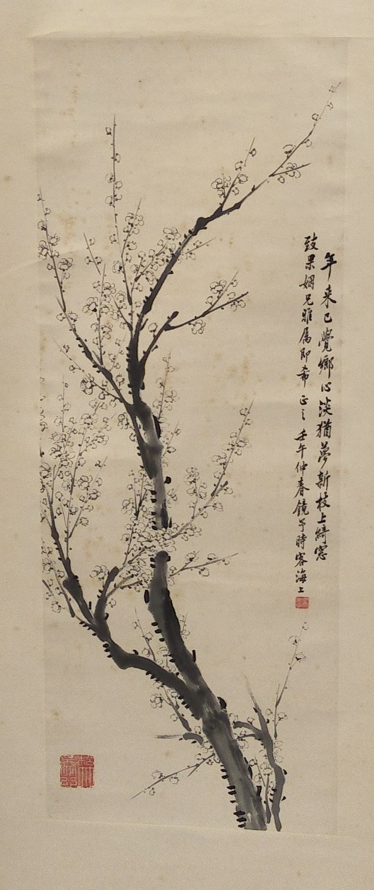 Chinese School, Wintersweet Blossoms Seal stamp for Jingyu & cyclical date of 1882/1942. Gift from the artist to his brother-in-law, with poem. Ink & Colour on Paper 94x35cmEstimate $200-300