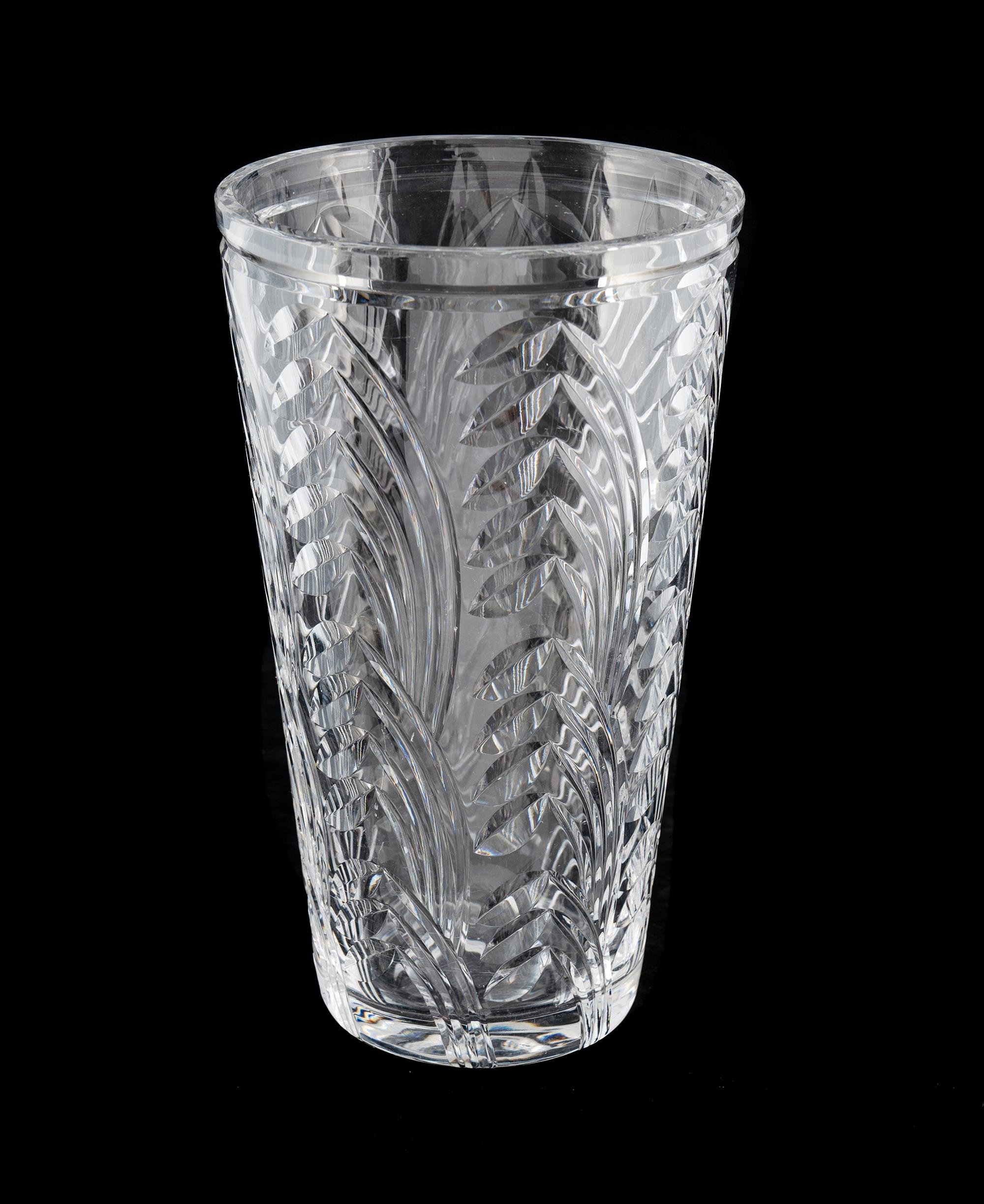 Large Webb Corbett Crystal Vase Deep cut design, possibly by Irene Stevens. (H28cm) Provenance: Deceased Estate, Sydney.Estimate $80-150