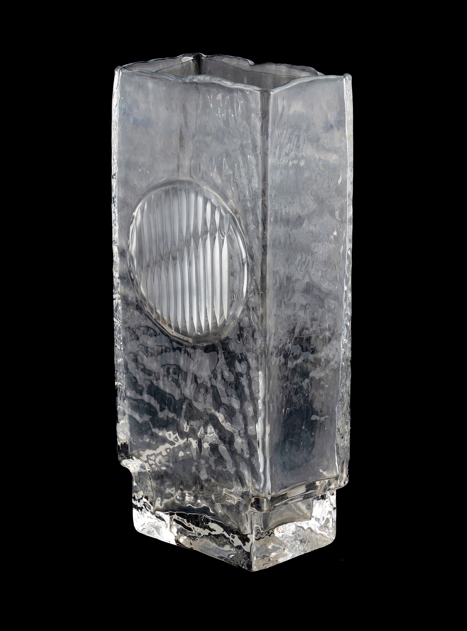 Mid 20th Century Studio Glass Vase With wheel cut circular design. (H26cm) Provenance: Deceased Estate, Sydney.Estimate $80-150