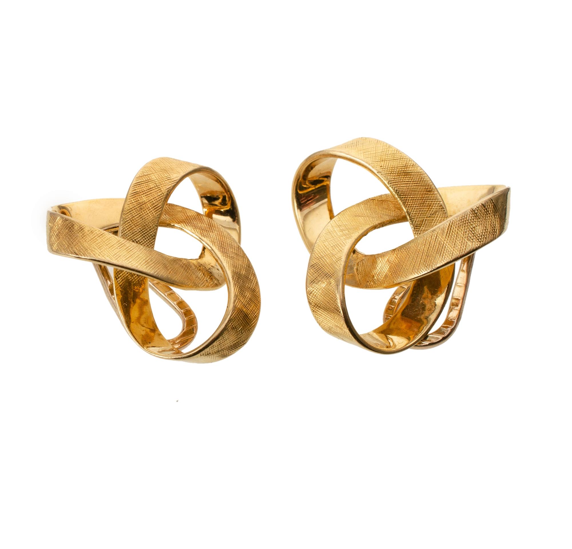 18ct Yellow Gold Loop Earrings 18ct textured finish trilobal loop, clip on earrings. Total weight 7.9g Provenance: Deceased Estate, Sydney.Estimate $375-550