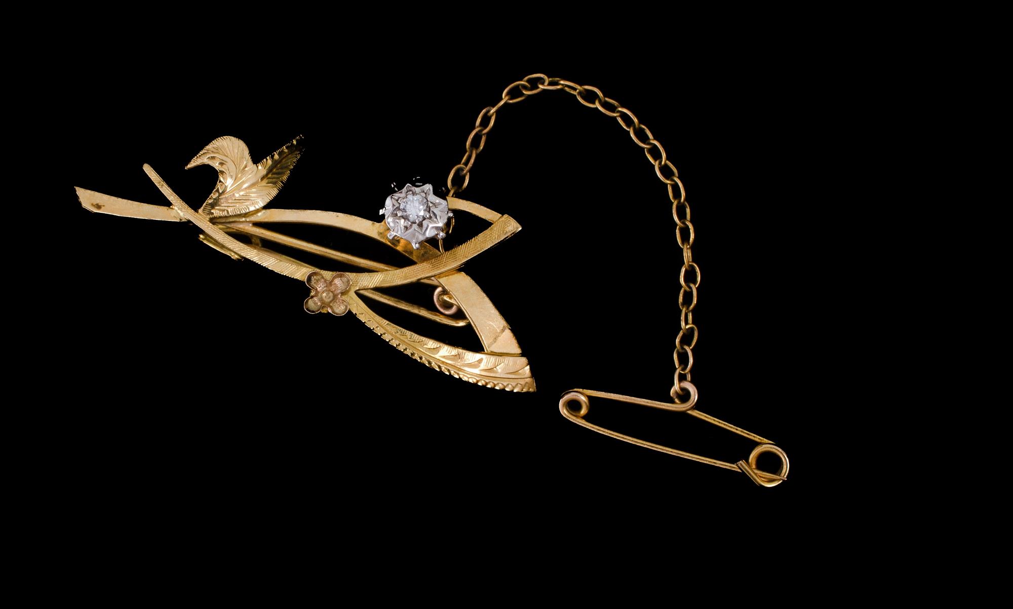18ct Yellow & White Gold Diamond Set 'Spray' Brooch Diamond weight around 0.05ct Total weight approx. 2.98g Provenance: Deceased Estate, Sydney.Estimate $120-250