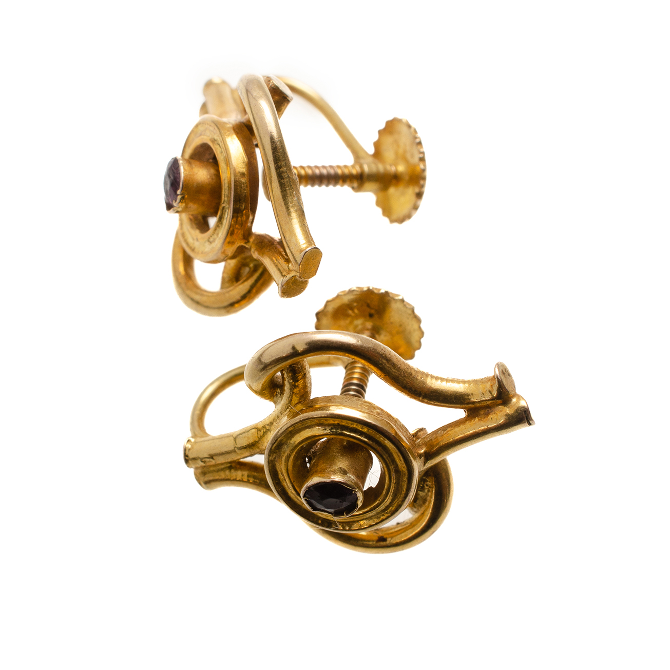 9ct Yellow Gold & Purple Stone Earrings Screw fitting set with purple paste, marked 'FOV12K' Total weight 2.95g Provenance: Deceased Estate, Sydney.Estimate $60-100