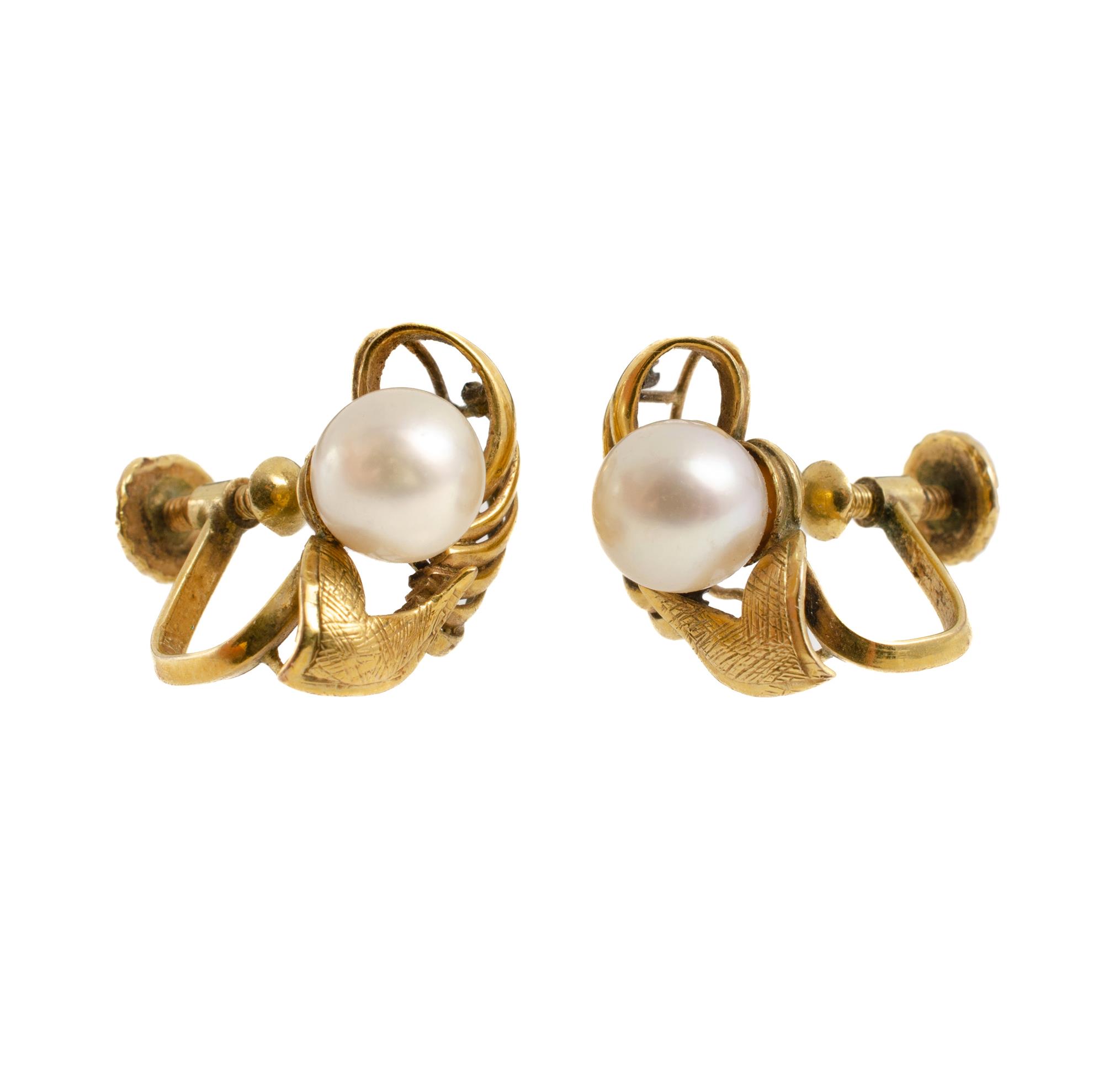9ct Yellow Gold Pearl Earrings 7mm cultured pearl screw fitting earrings. Total weight approx. 4.23g Provenance: Deceased Estate, Sydney.Estimate $60-100