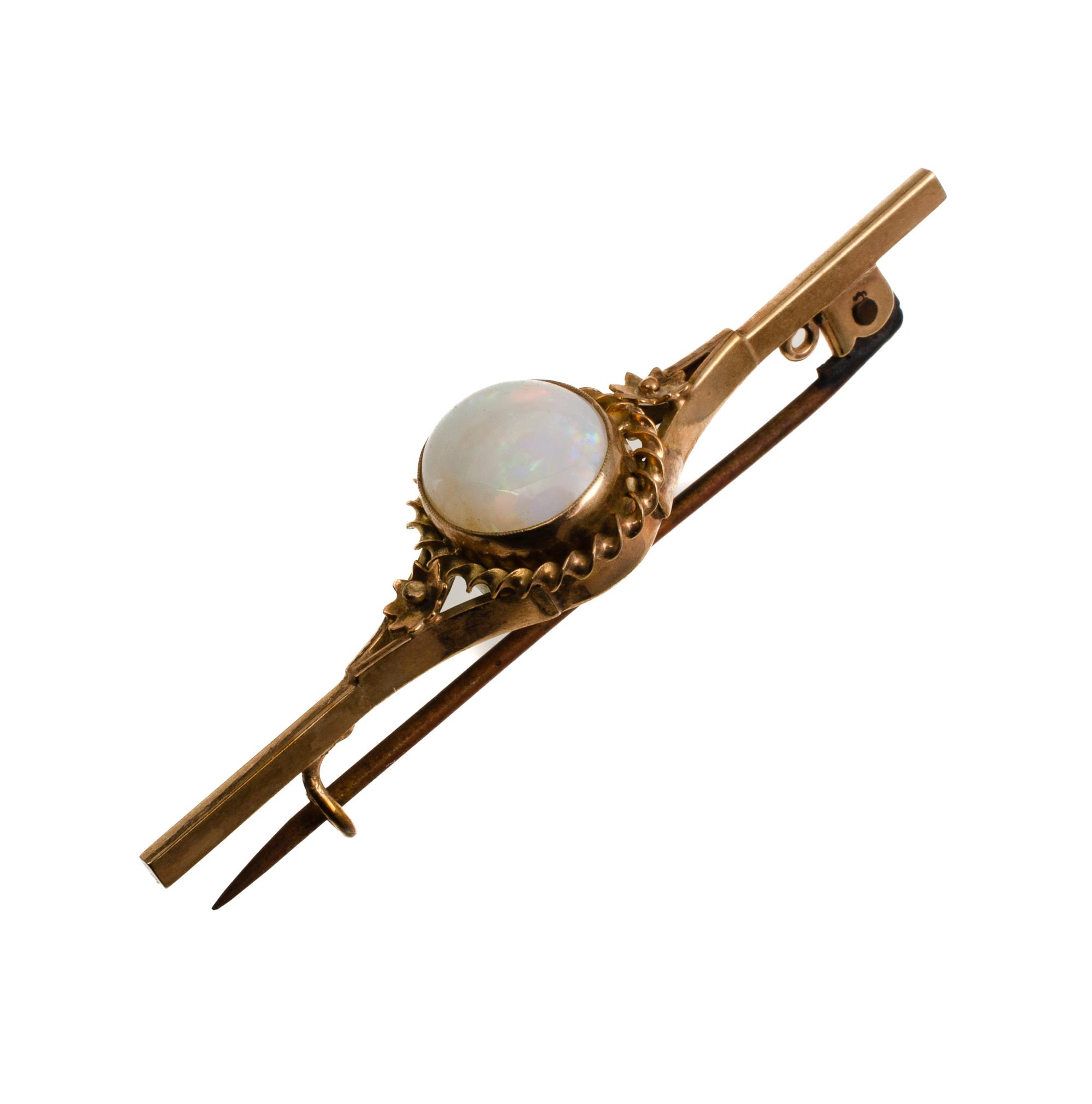9ct Pink Gold Opal Brooch Eleven 8.5 white opal cabochon set with 9ct bar. Total weight approx .3.7g Provenance: Deceased Estate, Sydney.Estimate $150-300