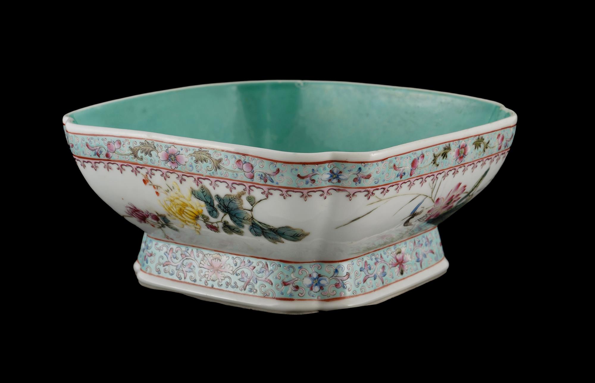 Chinese Republic Period Famille Rose Square Bowl Qianlong four-character seal mark in overglaze blue. (D22cm)Estimate $300-400