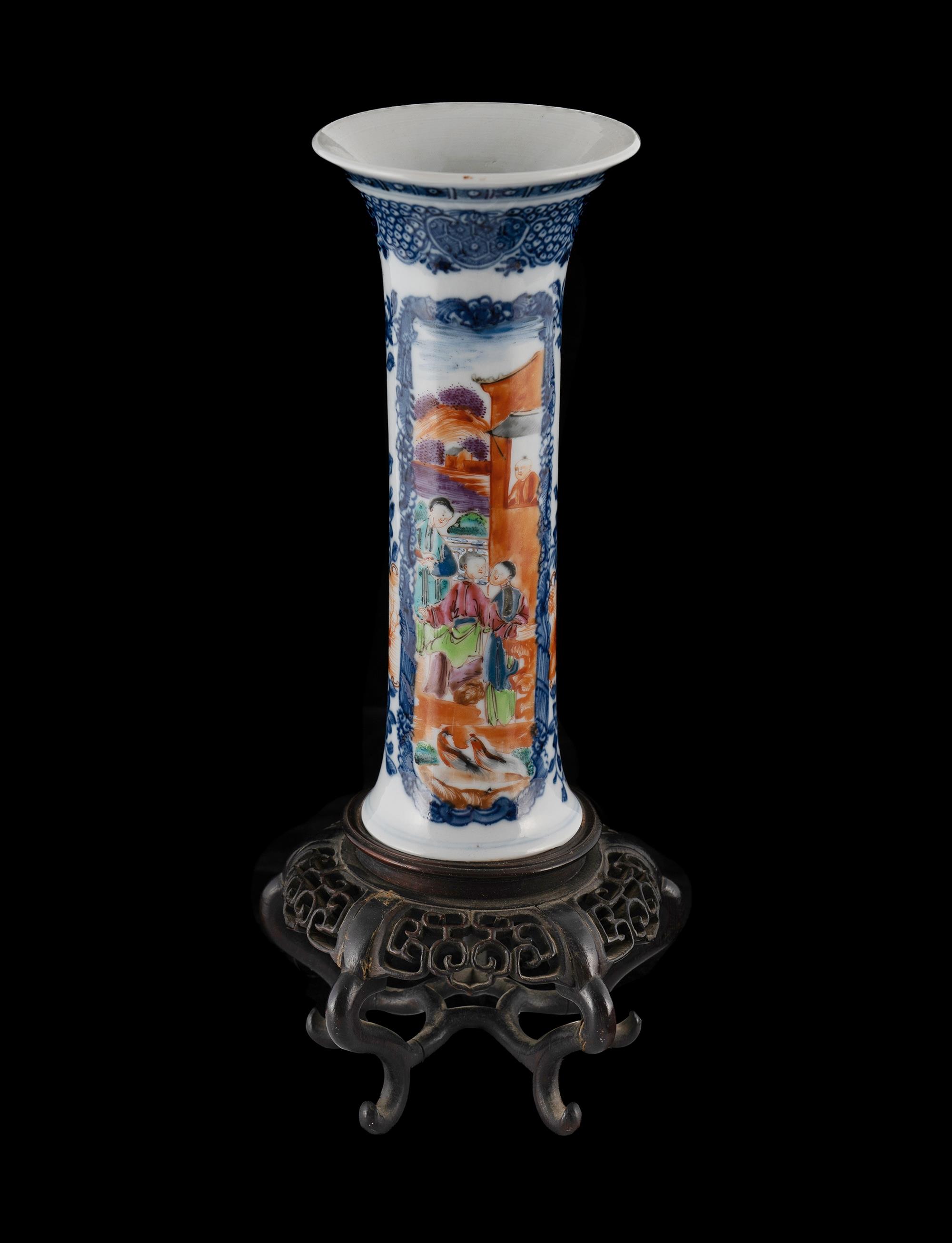 18th C Chinese Export Mandarin Pattern Vase & Later Stand. H19.7cm (excl. stand)Estimate $300-400