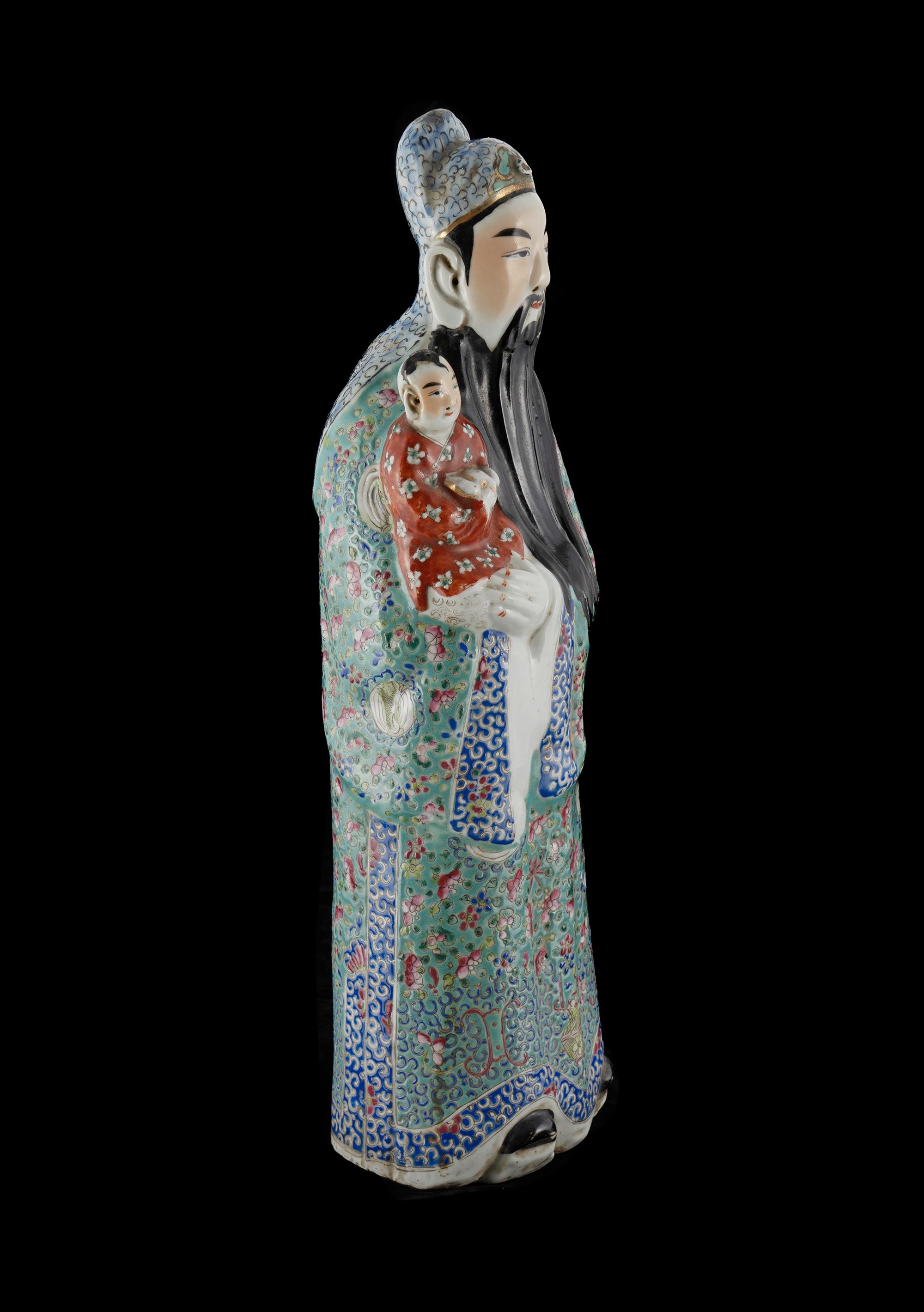 Chinese Republic Period Famille Rose Figure of Fu Xing. Xin Yi Jing Shang mark. Impressed seal. (46.5cm)Estimate $150-300
