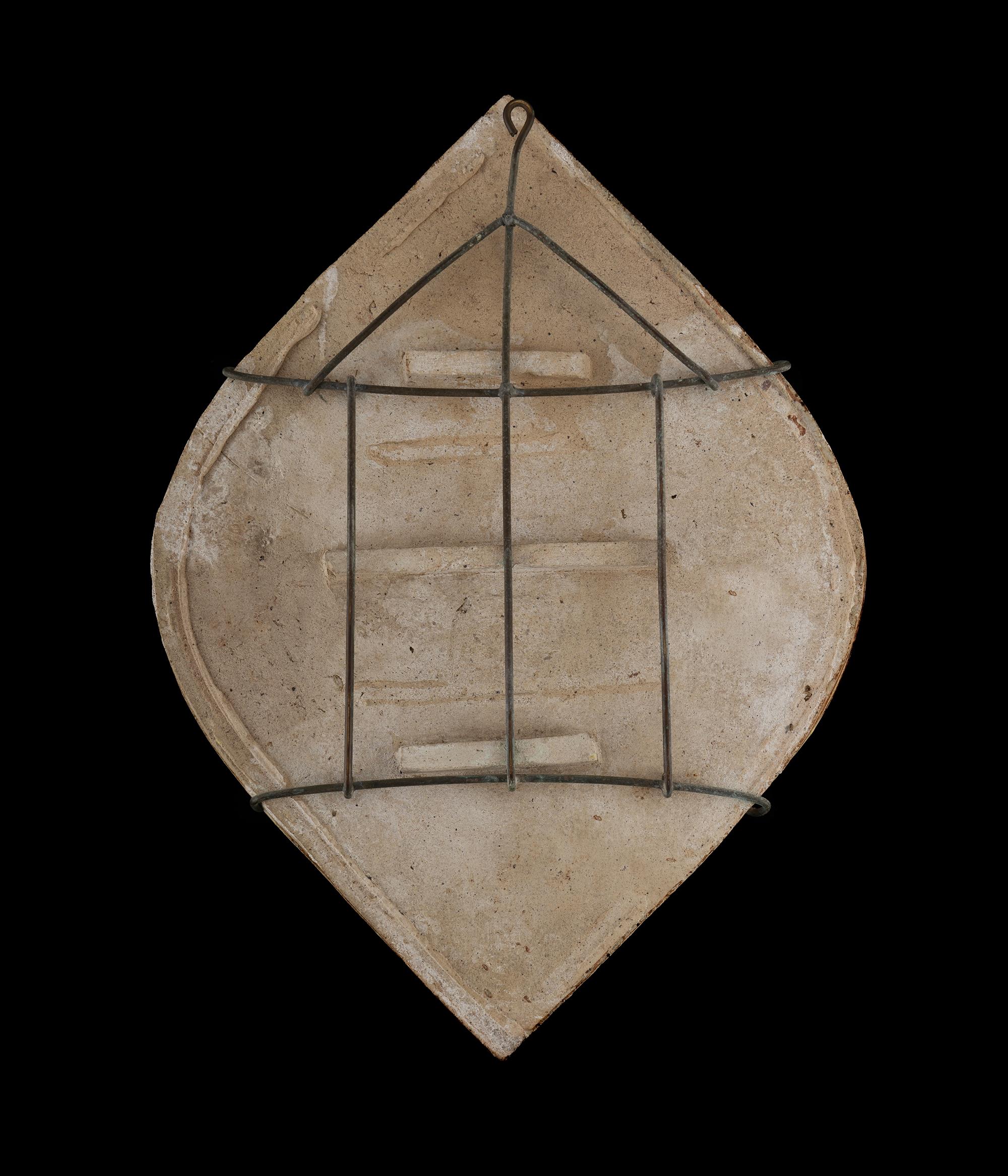 Thai Bencharong Famille Rose Enamelled Stoneware Plaque. Glaze chips to edge in parts, firing fault centre left, plaque is not cracked. (H39cm)Estimate $200-300