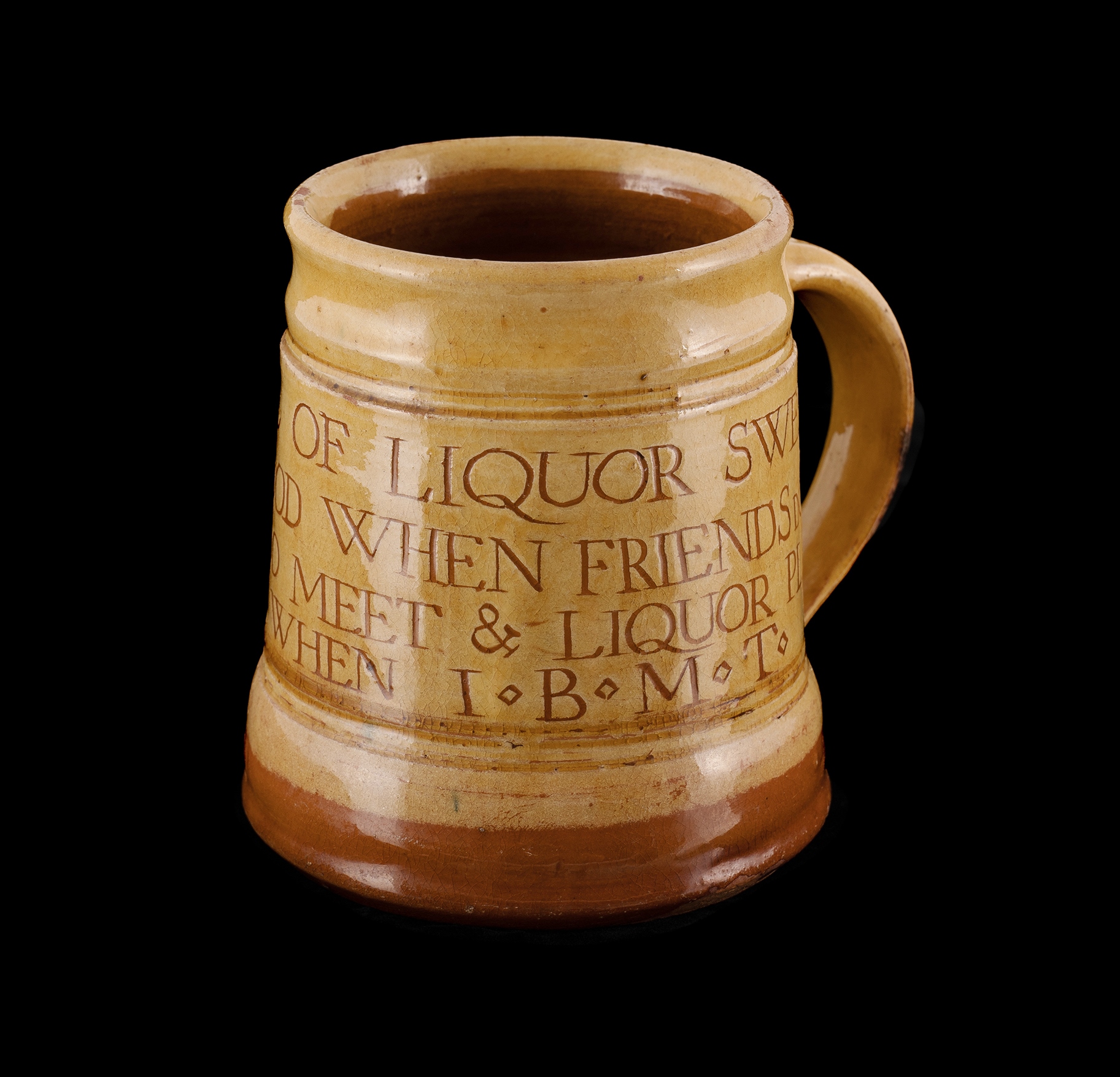 Michael CARDEW Winchcombe Pottery Motto Ware Mug Glaze frits to rim. (H12cm)Estimate $200-300
