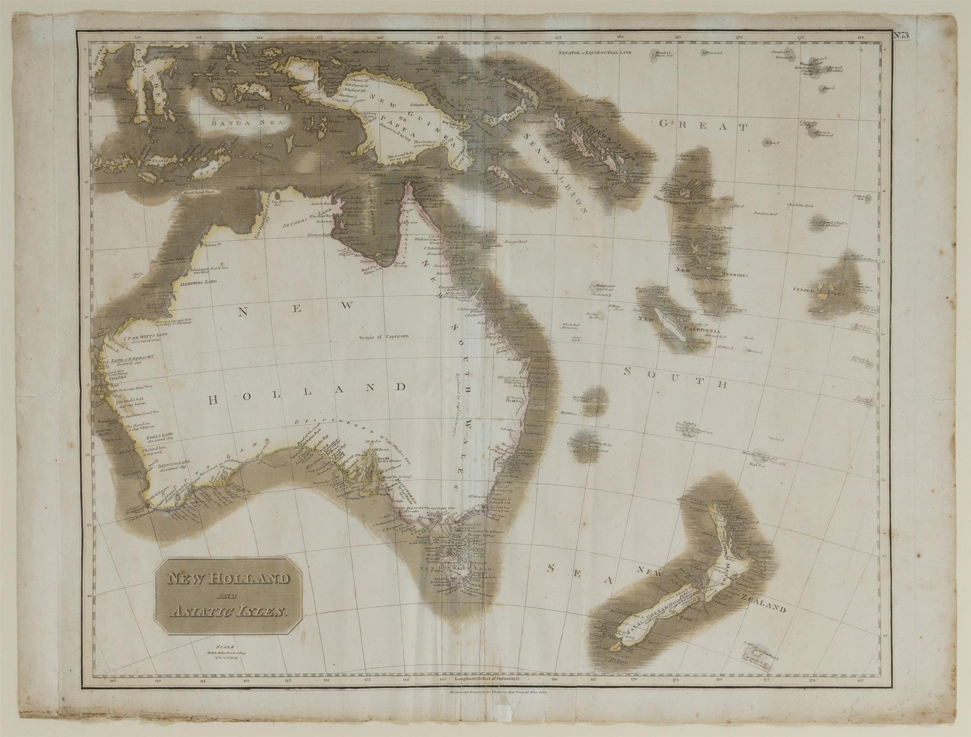 MAPS (2), John BAYLY (1755-1794) 'A New Map of Asia,' pub. 1782 (22x34cm), & 'New Holland and Asiatic Isles,' 1814 (50x61cm).Estimate $80-150