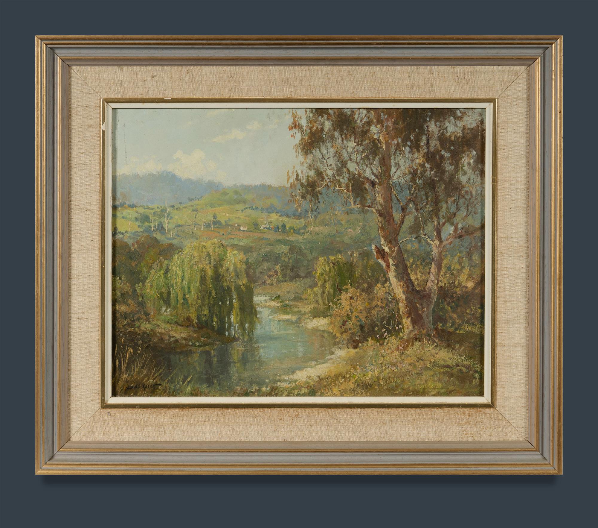 ALLCOT, John Charles (1888-1973) River Landscape with Willows & Gums Oil on Canvas Board 34.5x44.5cmEstimate $400-700