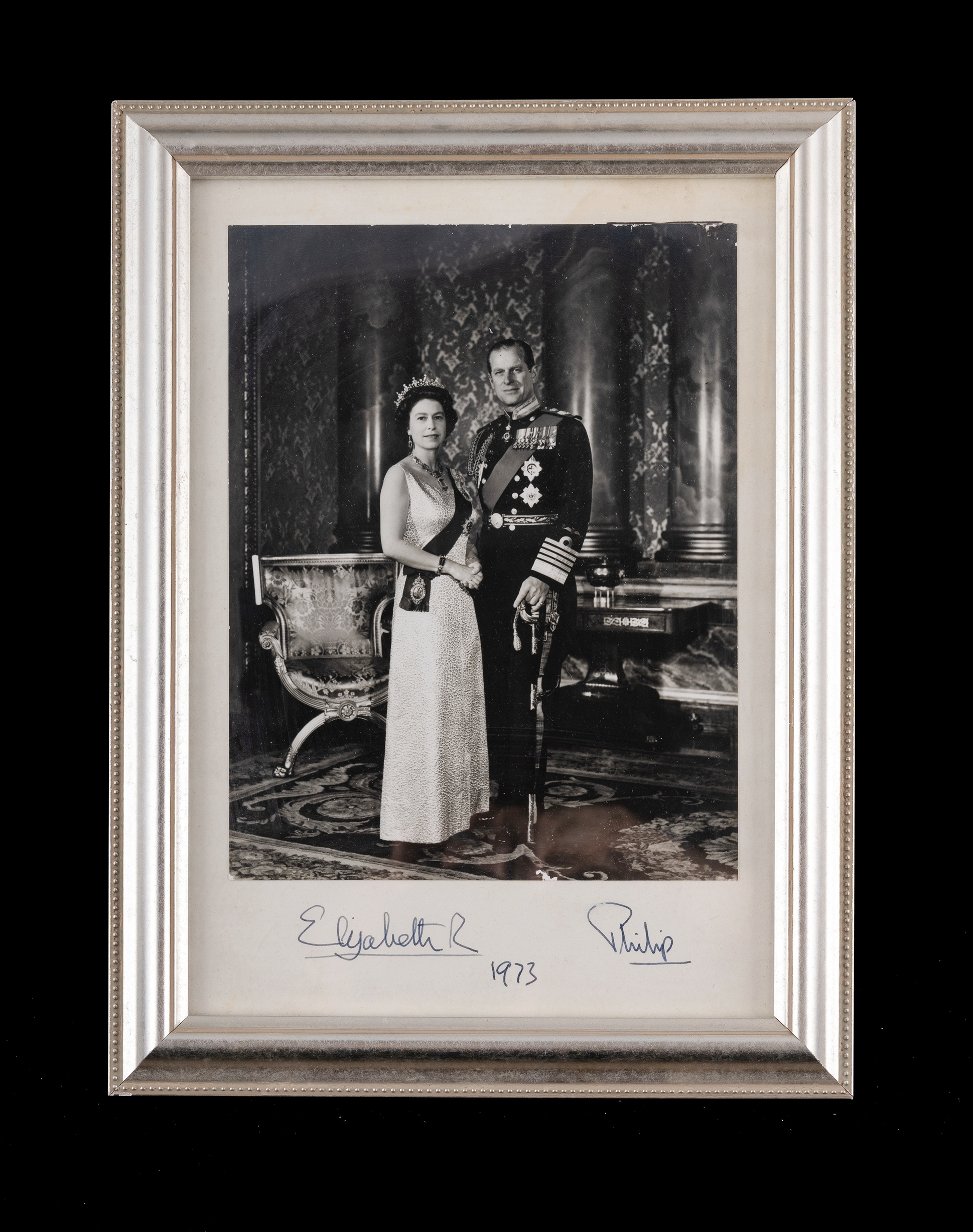 Signed Photograph of Queen Elizabeth II and Prince Philip Gifted to their chauffeur during their 1973 tour to Australia for the opening of the Sydney Opera House. (22.5x17.5cm (image)Estimate $500-1,000