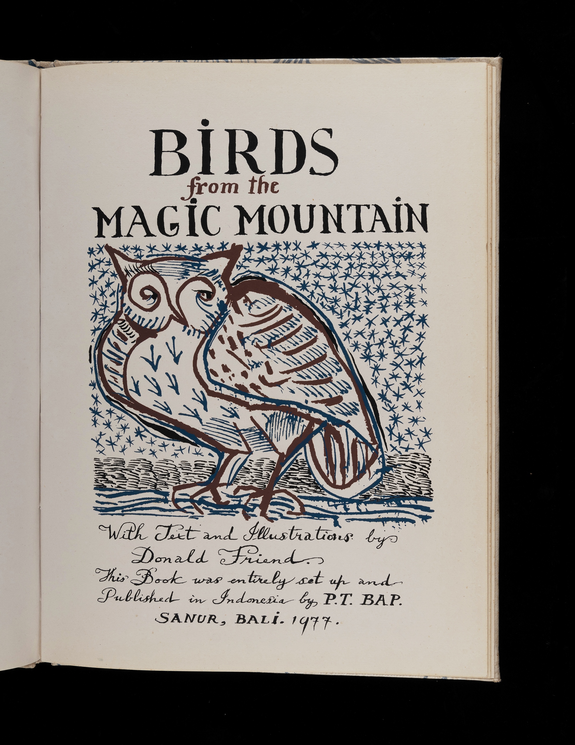 BOOK, 'Birds from the Magic Mountain,' by Donald Friend, pub. P.T. Bap, Bali, 1977. Limited edition 371/400. Signed by the author.Estimate $300-500