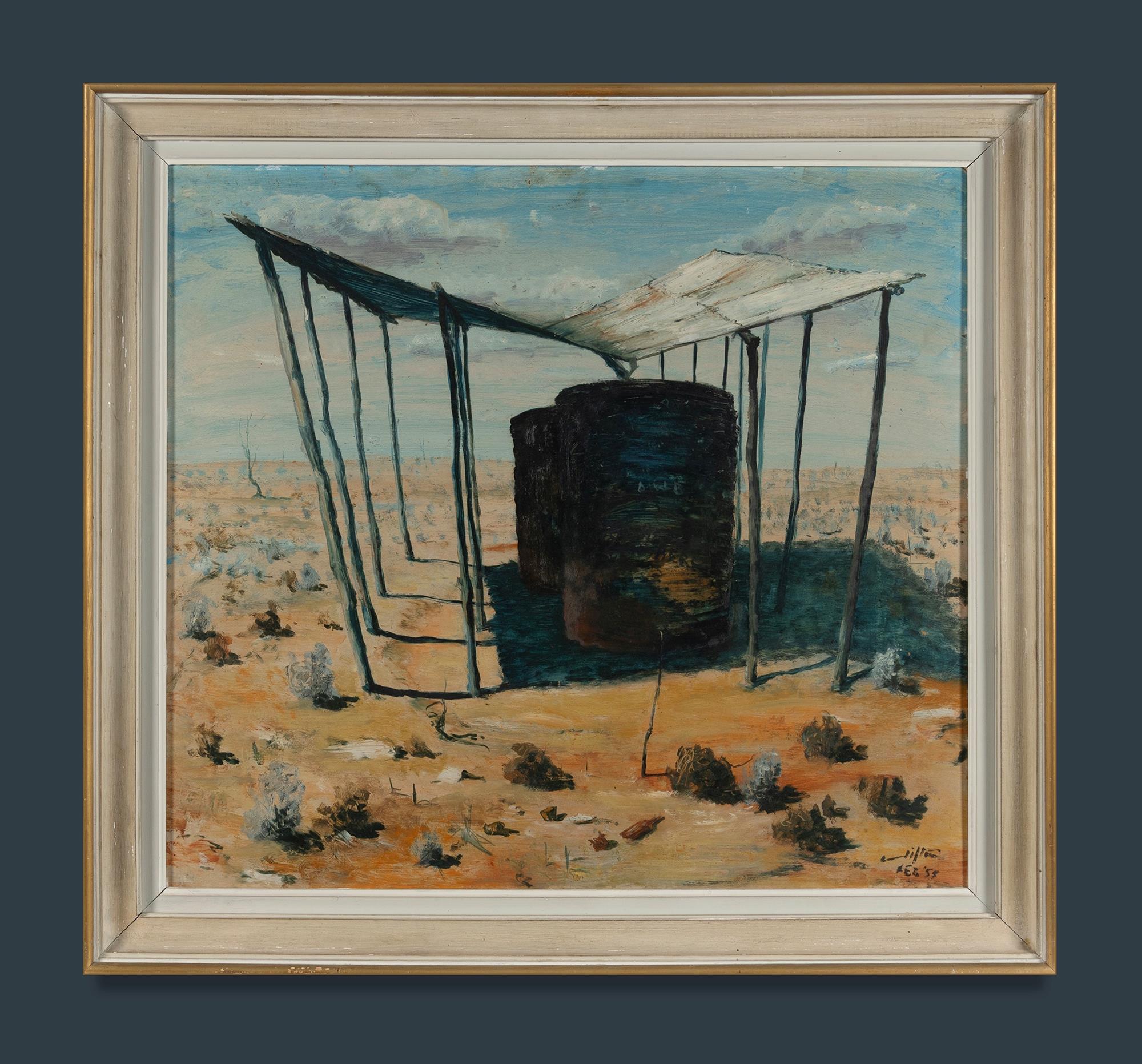 PUGH, Clifton Ernest (1924-1990) 'Water Tank,' 1955. Oil on Board 70x77.5cm PROVENANCE: Christie's London, 11th October 2011, (lot 42).Estimate $3,000-5,000