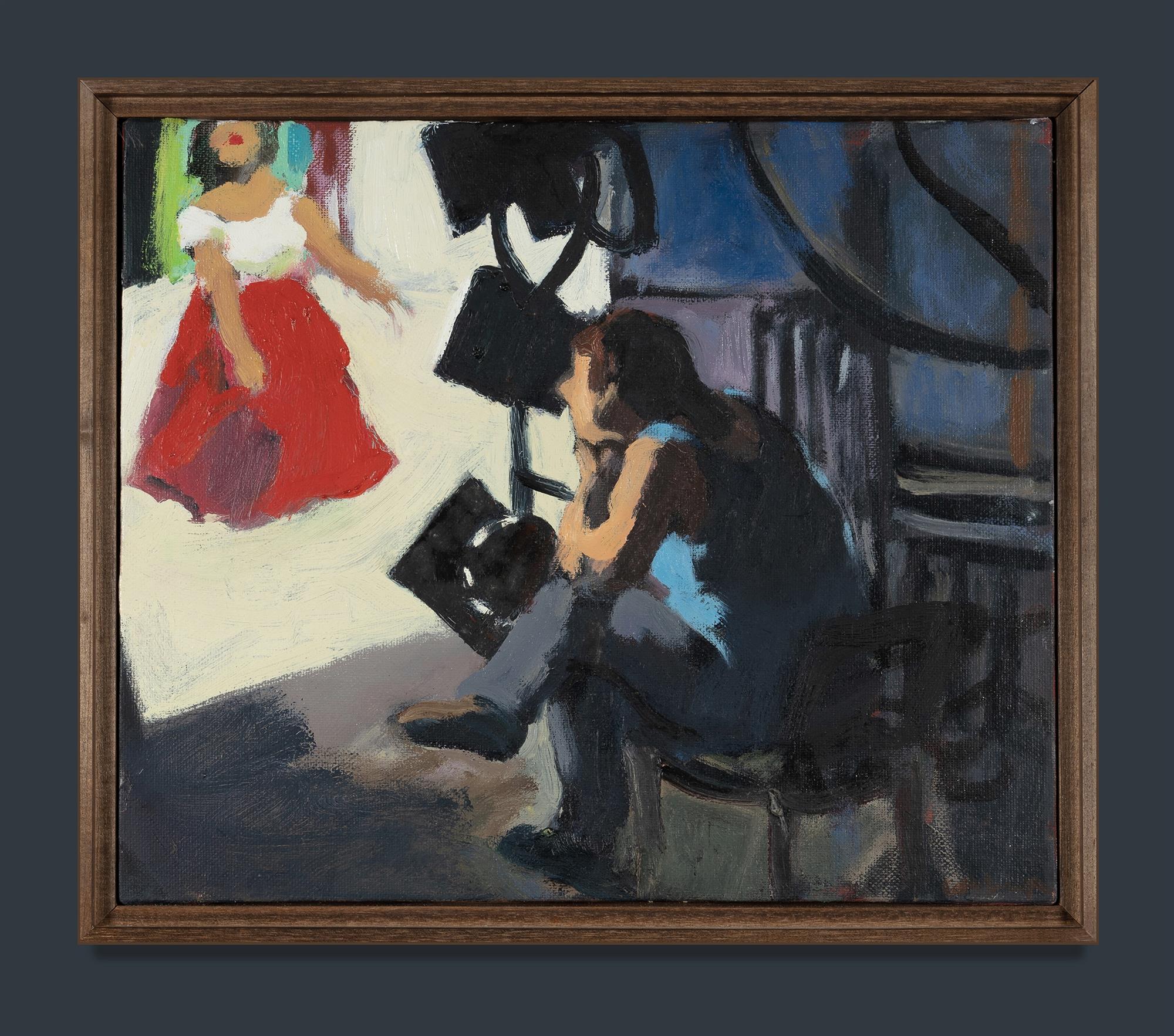 SHARPE, Wendy (b.1960) 'Backstage Woman & Carmen' Oil on Canvas 25.5x30.5cm PROVENANCE: king street gallery on burton, Darlinghurst, June 2006, cat #21; private collection, Sydney.Estimate $700-1,200