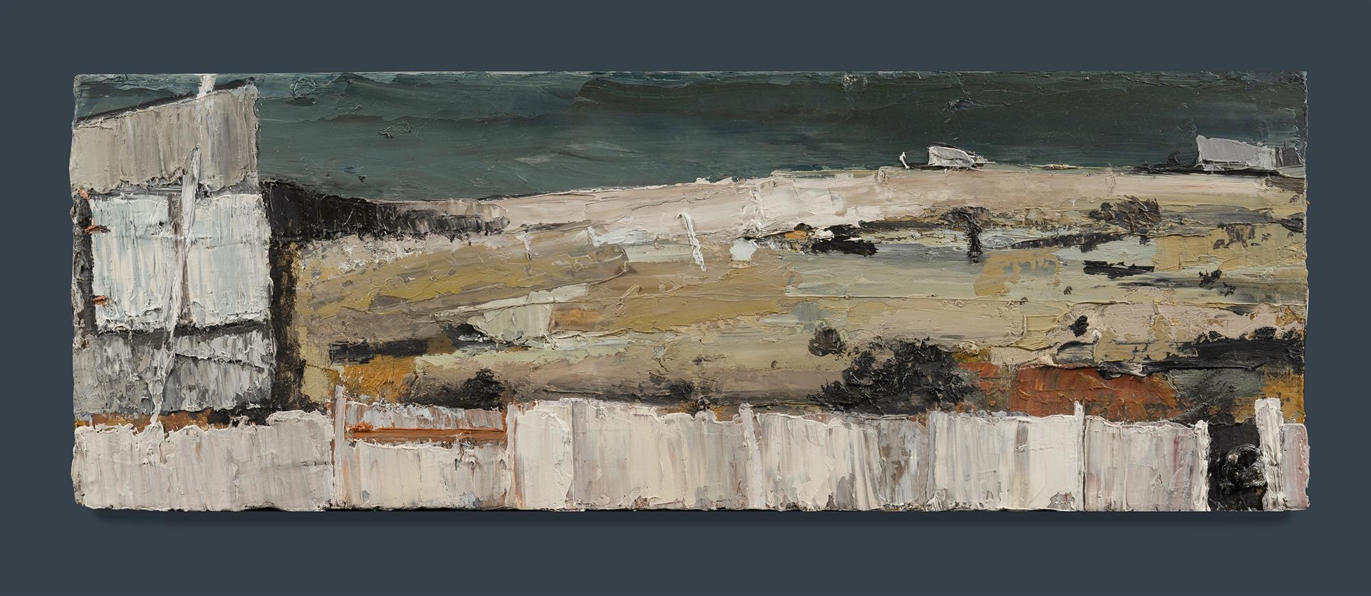 HART, Amanda Penrose (b.1963) 'Shed,' 2007. Signed & inscribed verso. Stamp for King Street Gallery on Burton. Oil on Board 20.5x56cmEstimate $400-700
