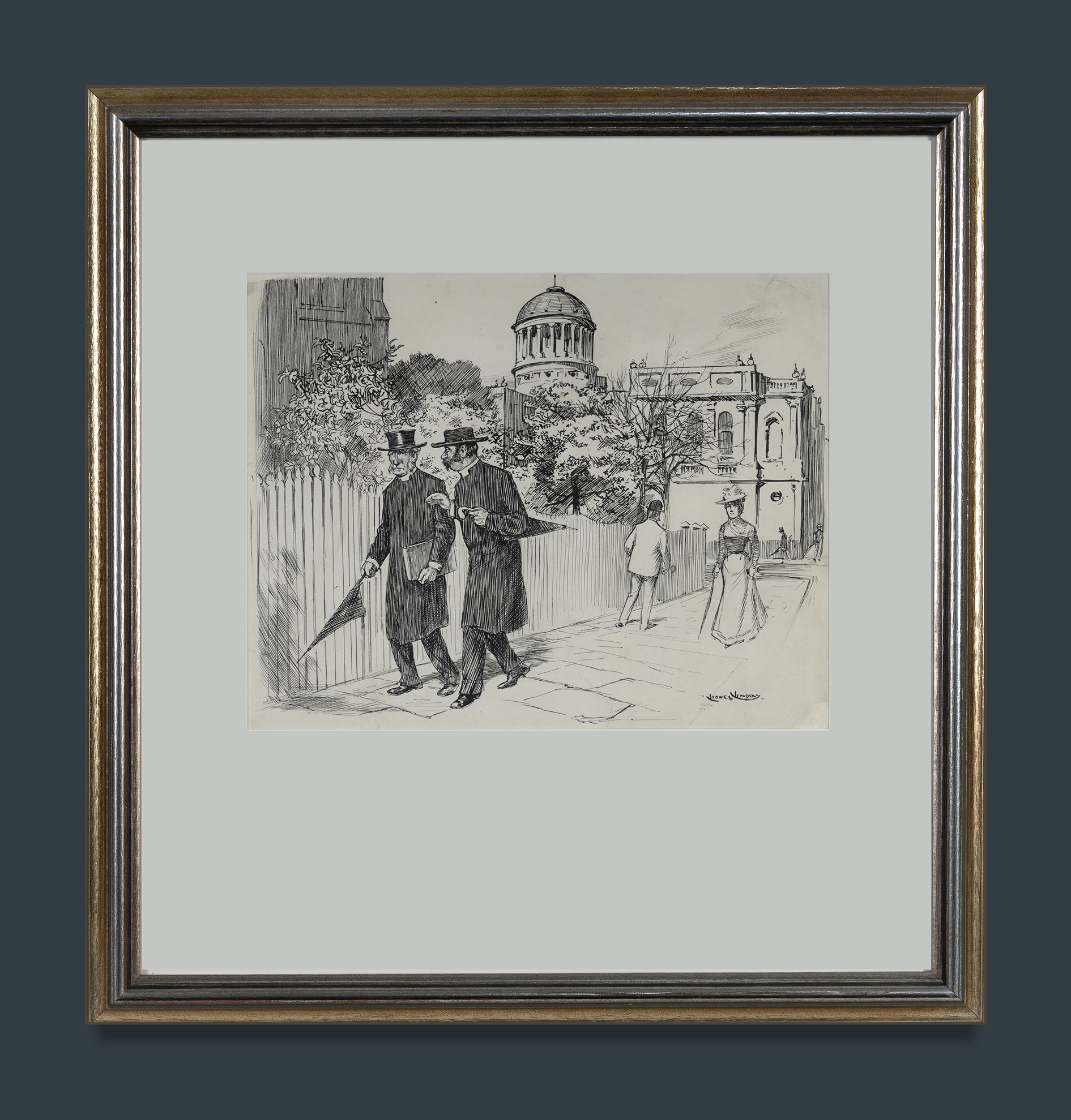 LINDSAY, Lionel (1874-1961) The Clerics, c.1902. Pen & Ink 22.5x28.5cm PROVENANCE: Private collection, Sydney.Estimate $300-500