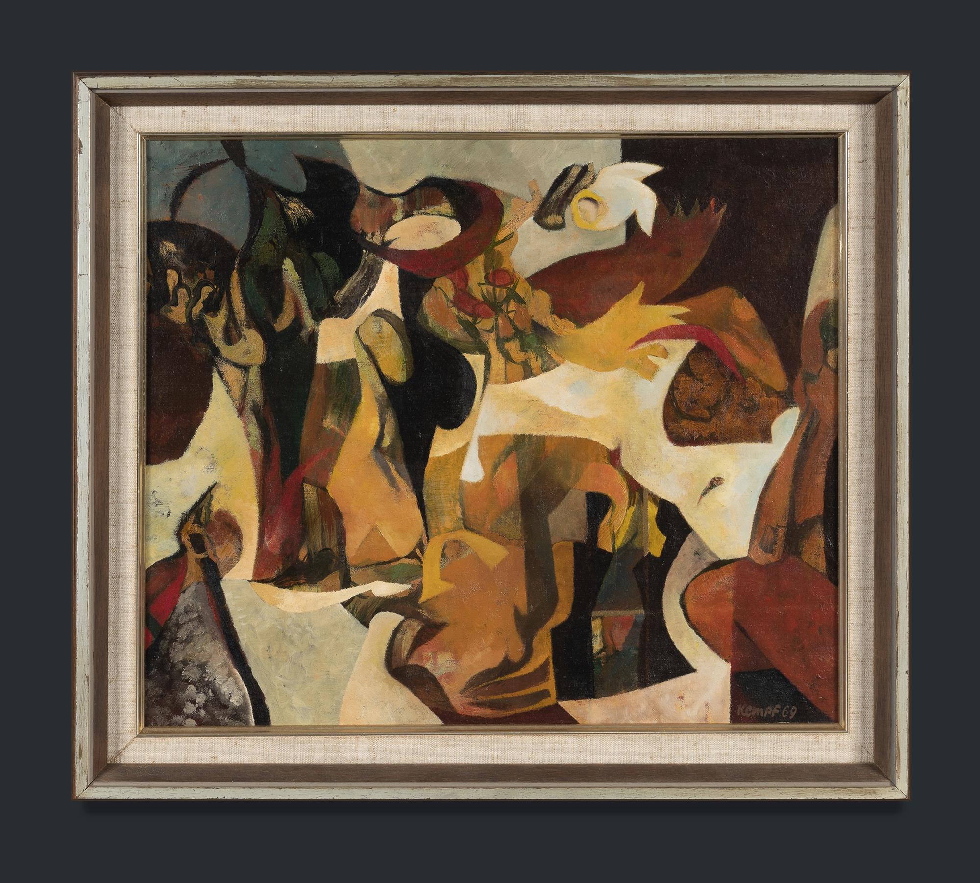 KEMPF, Franz (1926-2020) 'The Dreamtime,' 1969. Inscribed verso by the artist. Oil on Canvas on Board 34x40.5cm PROVENANCE: The artist; private collection, Sydney.Estimate $800-1,500