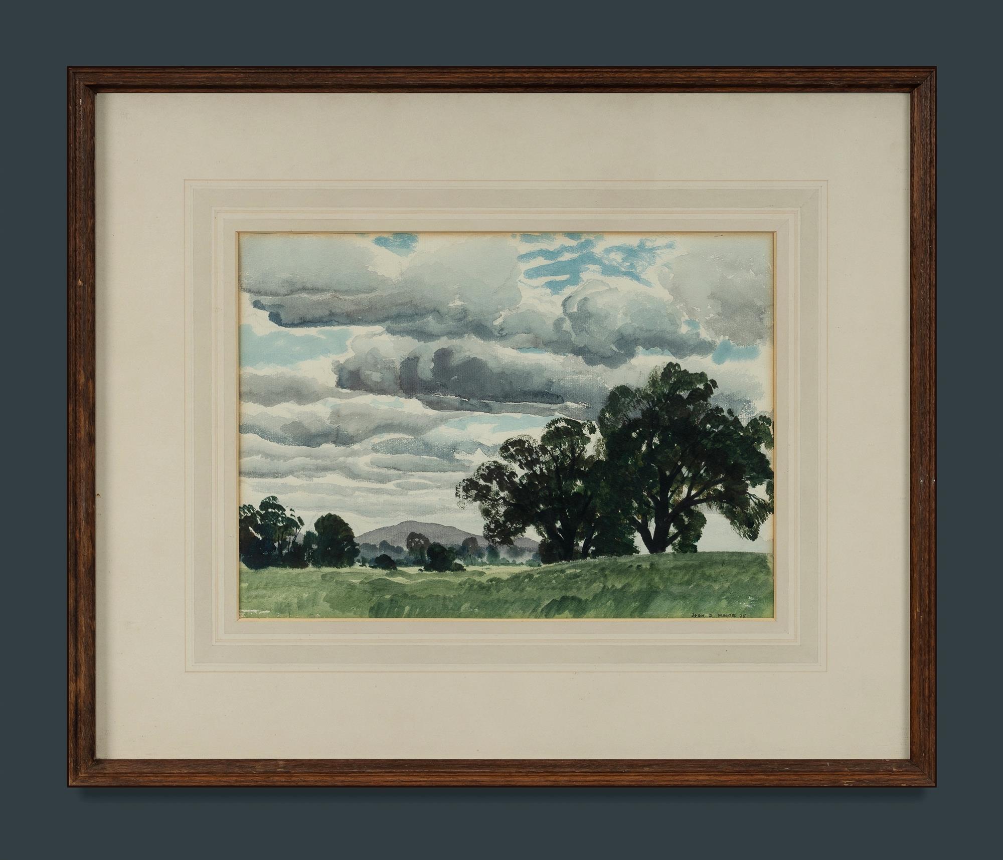 MOORE, John Drummond (1888-1958) 'Near Atcham [England]' 1938. Title inscribed verso. Label for Macquarie Galleries, Sydney. W/Clr 26.5x36.5cm PROVENANCE: A private collection, Sydney.Estimate $200-300