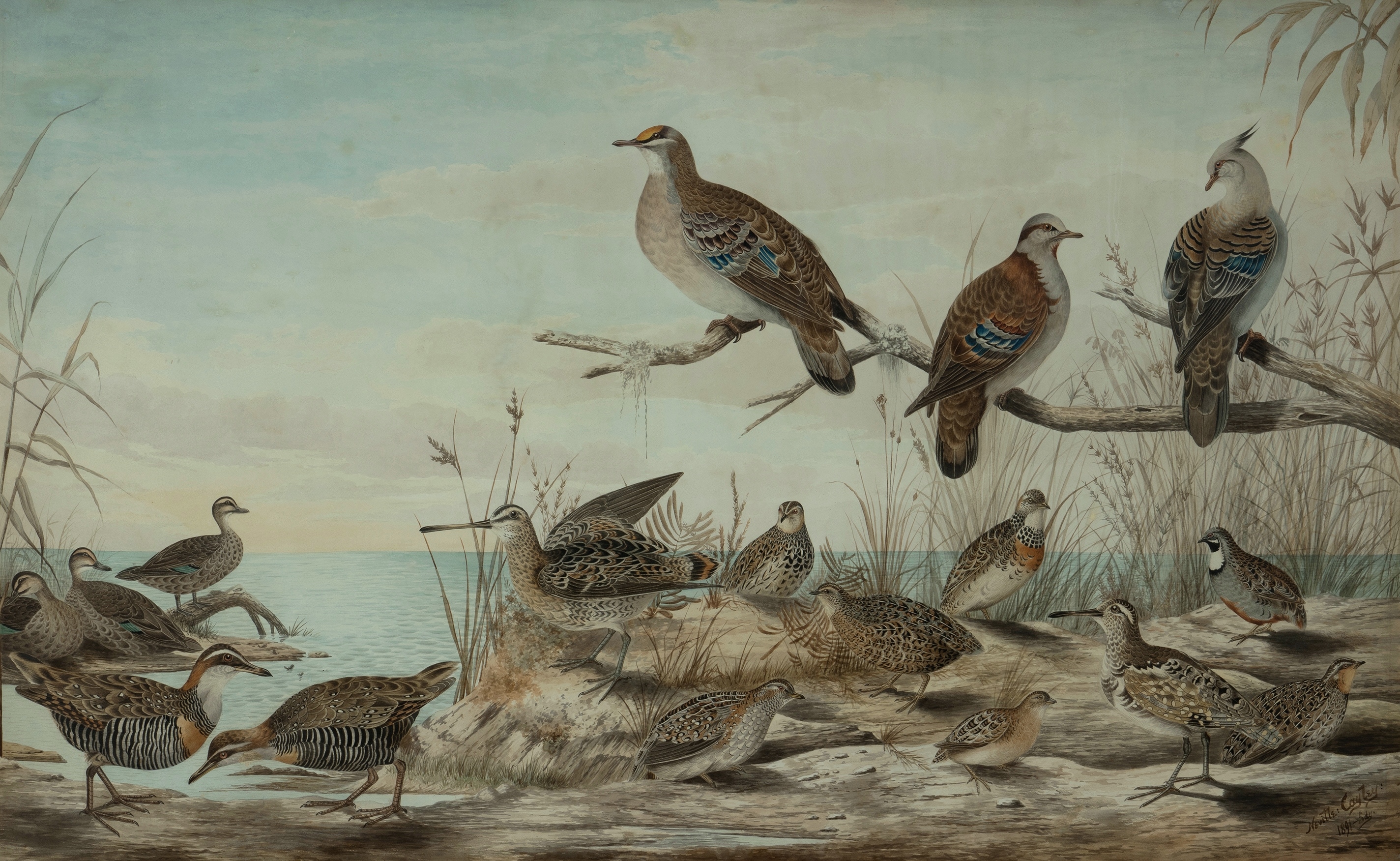 CAYLEY, Neville Henry (1853-1903) Panoply of Native Birds, Sydney Coastline, 1891. W/Clr 71x115cm (Rm10)Estimate $20,000-30,000