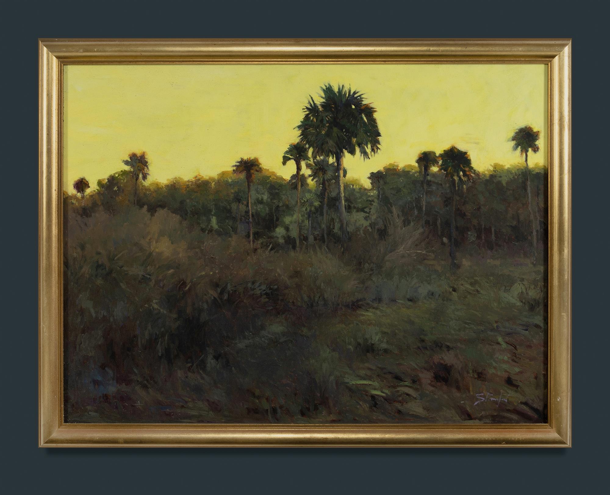 STANFORD, John (USA b.1947) Evening Glow, Wetland Palms. Oil on Canvas 74.5x100cmEstimate $300-600