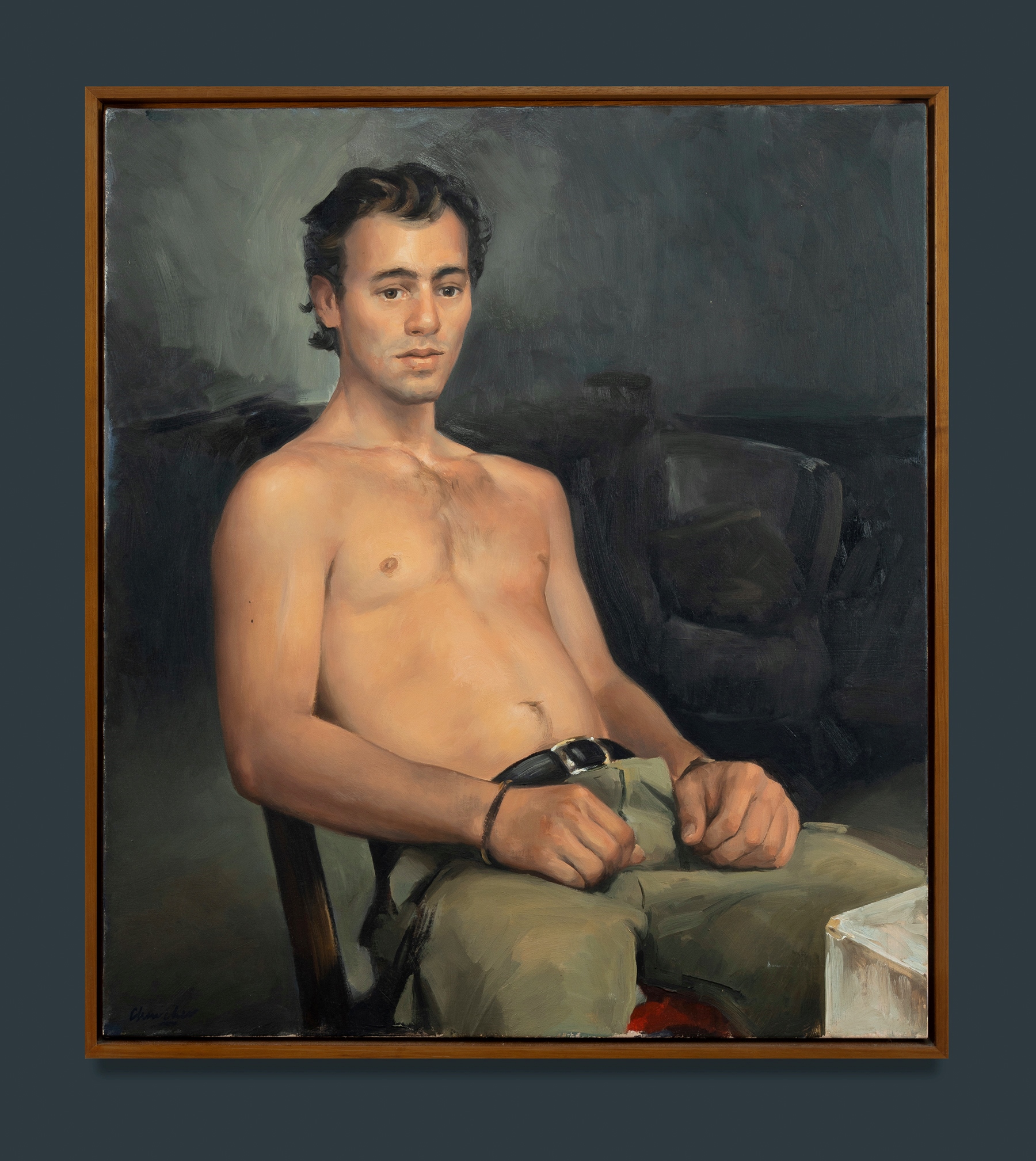 CHURCHER, Peter (b.1964) 'Nick Reclining,' 2002. Australian Galleries, Sydney, labels verso. Oil on Linen 86x76cmEstimate $2,000-4,000