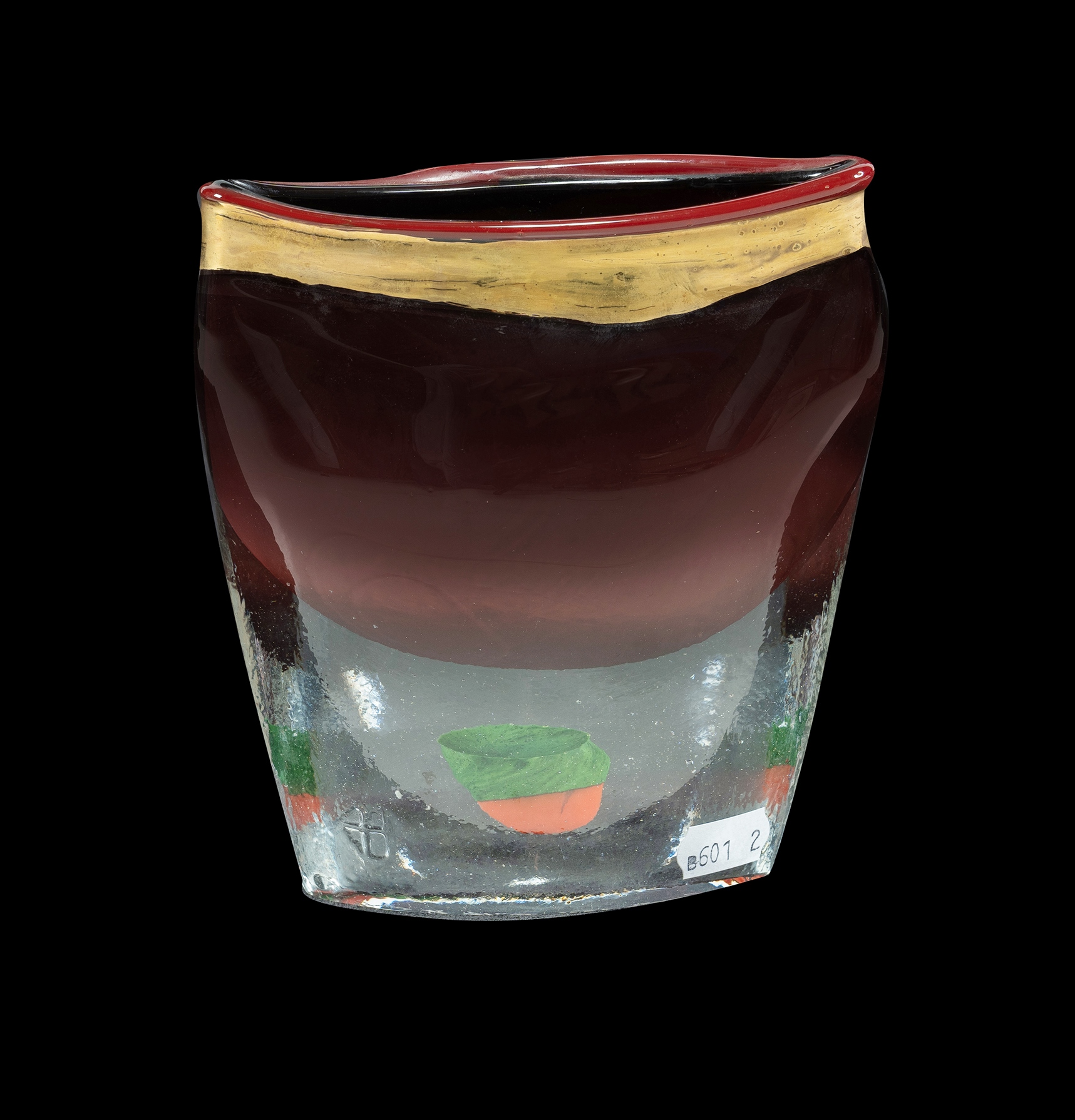 HIRST, Brian (b.1956) 'Guardian' (from the Cycladic Forms series), 1985. Etched signature to base. Enamelled, Gilded & Etched Glass H14.5cmEstimate $200-400