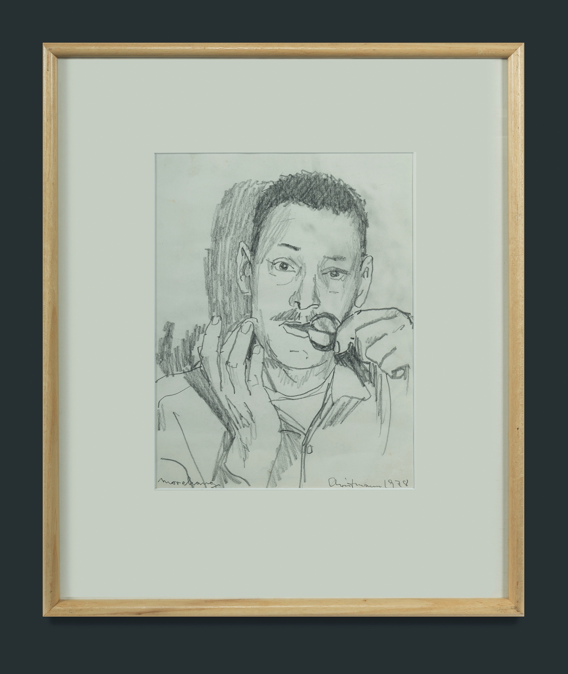 CHRISTMANN, Gunter (1936-2013) 'Morchang (Self Portrait with Jaw Harp)' 1978. Related work: 'Not Titled (Self Portrait with Jaw Harp),' 1995, exhibited in Gunter Christmann: Now and Then, Heide Museum of Modern Art, Victoria, 26th July- 6th November 2014 (cat #90, page 74). Pencil 29x22.5cm Estimate $150-300