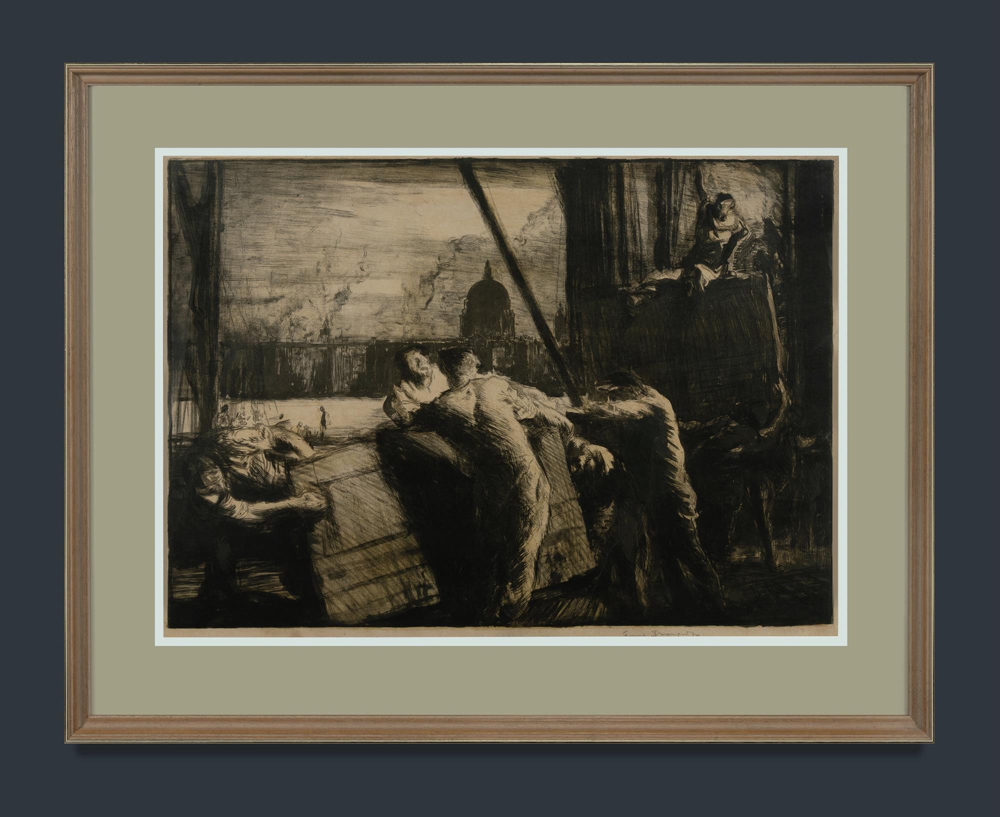 BRANGWYN, Frank (British 1867-1956) London Docks with St Paul's Signed in pencil lower right. Lithograph 52x73.5cm PROVENANCE: A private collection, Sydney.Estimate $400-700