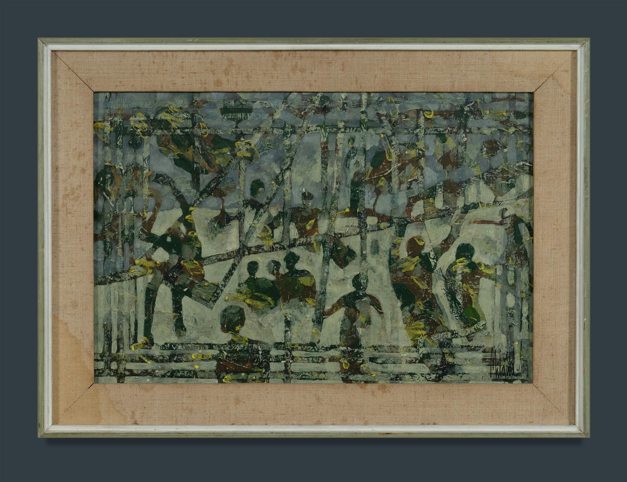 MILGATE, Rodney Armour (1934-2015) 'Swing,' Sydney, October 1969. Oil on Board 44.5x67.5cm PROVENANCE: The Johnstone Gallery, Brisbane (label verso); a private collection, Sydney.Estimate $400-700