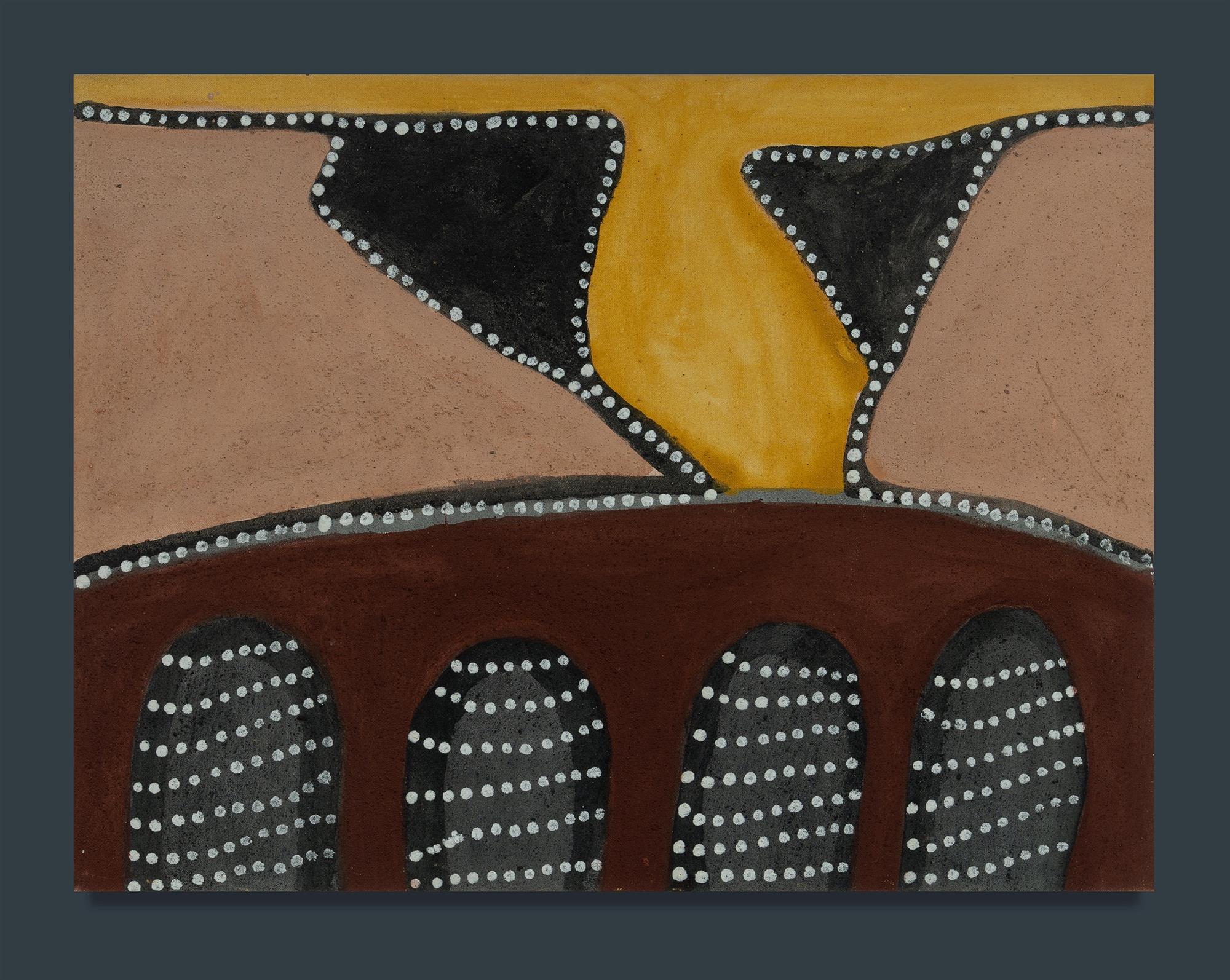 BRITTEN, Jack (Aboriginal c1912-2002) 'Ngarrgoorliny Munbin - Purnululu,' 2002. Signed verso. Natural Ochres on Canvas 80x60cm PROVENANCE: Warmun Art Centre cat #368/02.Estimate $1,000-2,000