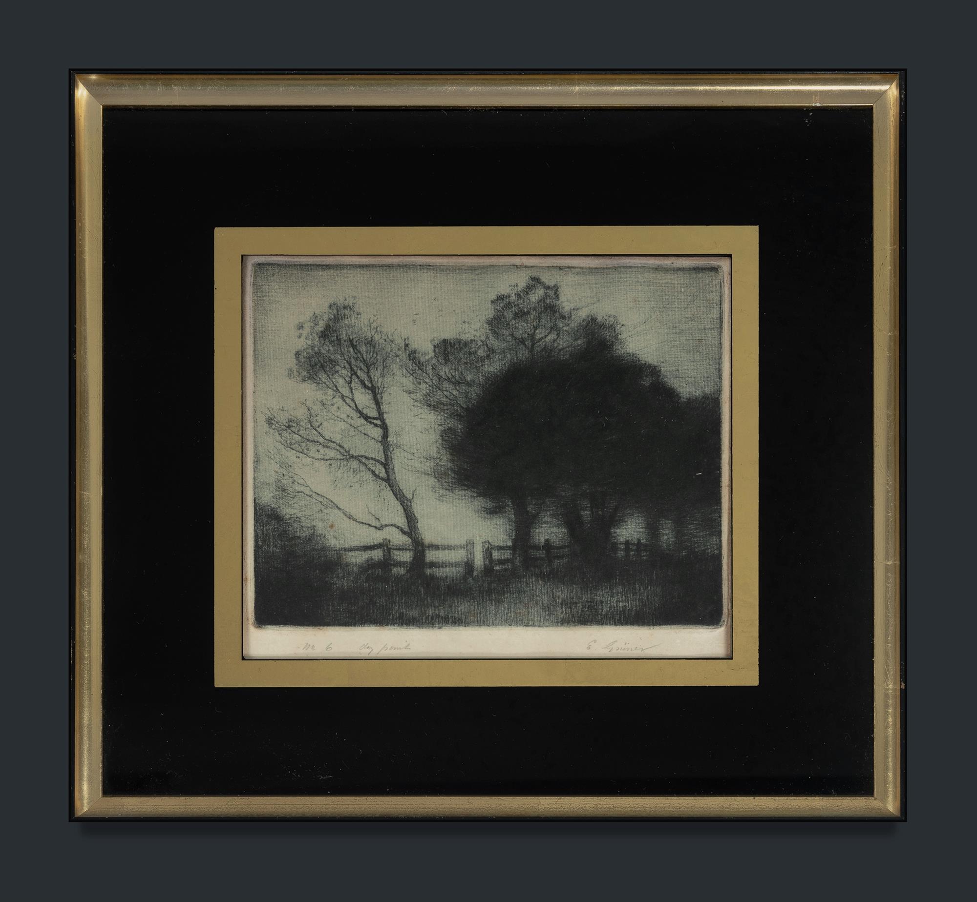 GRUNER, Elioth (1882-1939) Evening Signed and inscribed in pencil. Drypoint Etching no. 6 13.5x17.5cm (plate)Estimate $700-1,200