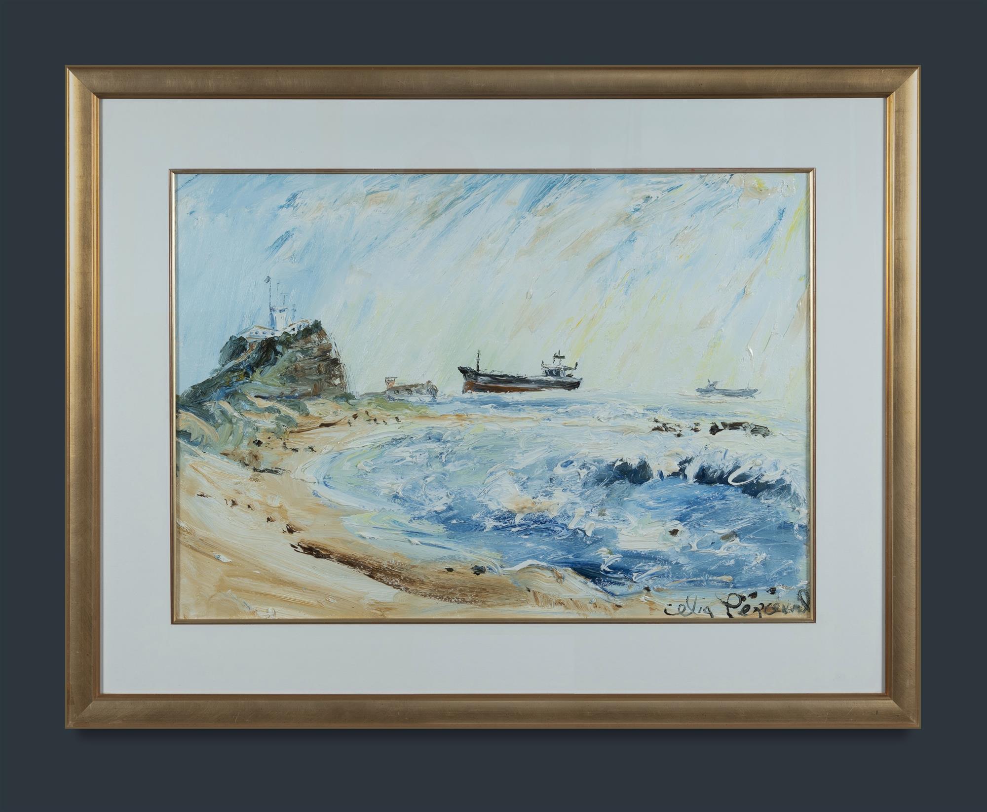 PERCEVAL, Celia (b.1949) Ships Passing Nobbys Head, Newcastle. Oil on Paper 54.5x77cmEstimate $1,500-2,500