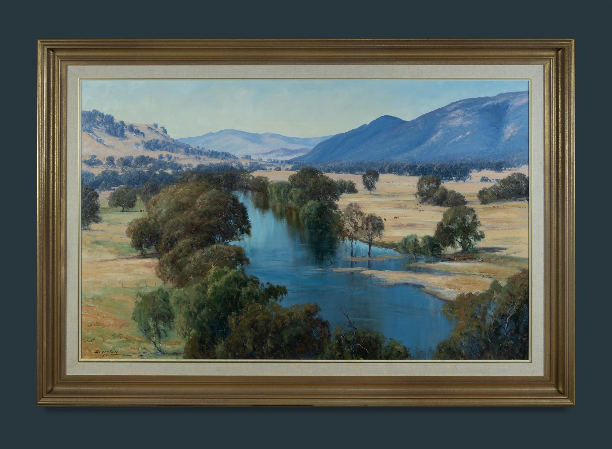 DOWNTON, John (b.1939) 'Land of Promise, Murray River,' 1985. Oil on Canvas on Board 75x121cmEstimate $1,500-2,500
