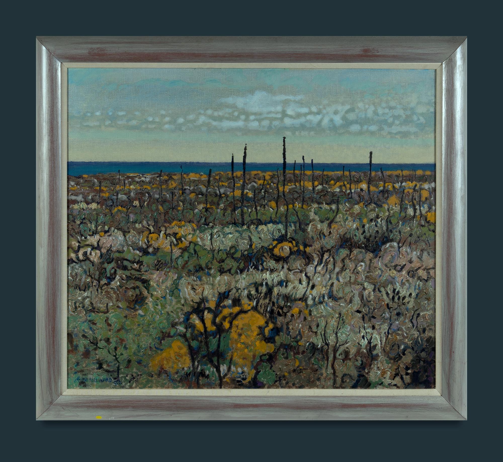 MILLWARD, Clem (b.1929) 'Coastal Heath, Kalbarri,' 1987. Artarmon Galleries, Sydney, label verso. Oil on Linen 65x75cm PROVENANCE: Deceased estate, Sydney.Estimate $700-1,200