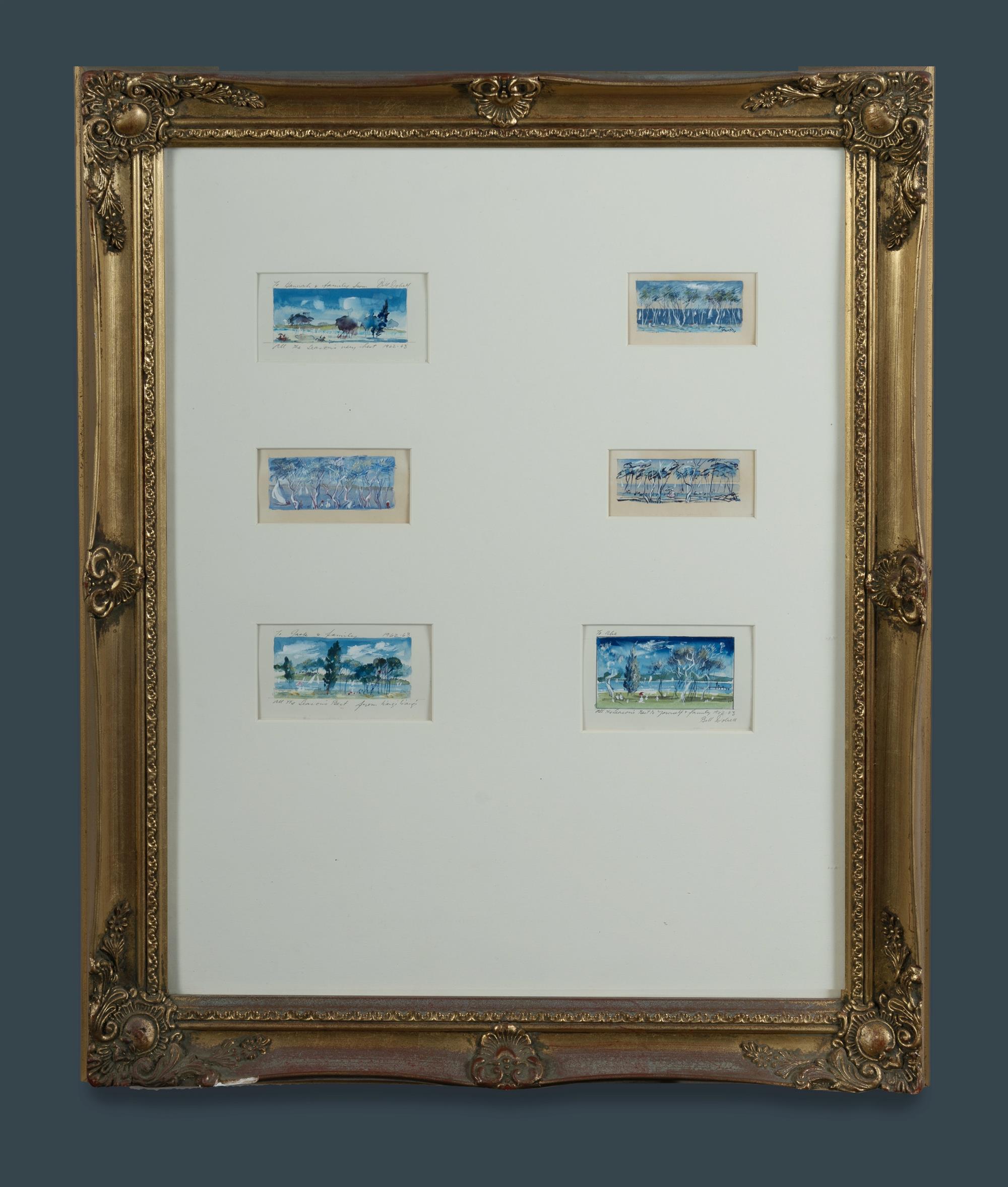 DOBELL, William (1899-1970) (6) Six Wangi Wangi Christmas Cards, c.1962-63. Three inscribed (two signed). W/Clr & Gouache (6) 4x7.5cm (largest)Estimate $2,000-4,000