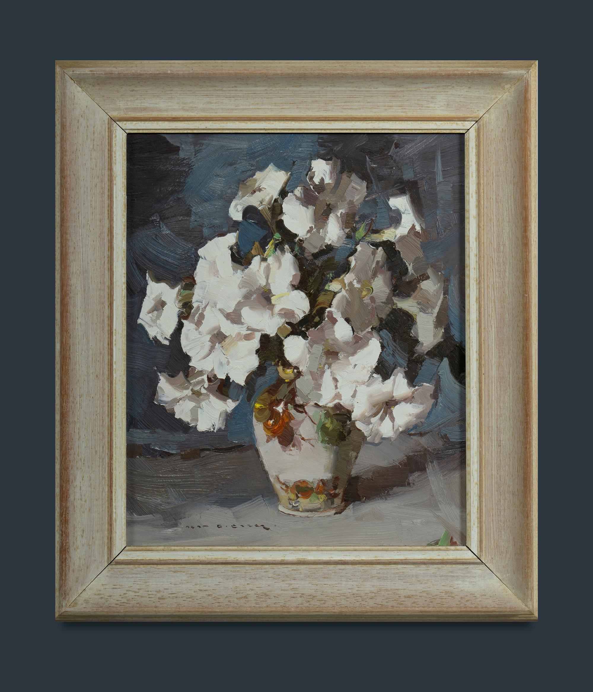 BAKER, Alan Douglas (1914-1987) 'Petunias' Oil on Board 29.5x24cm PROVENANCE: Deceased Estate, Sydney.Estimate $500-800