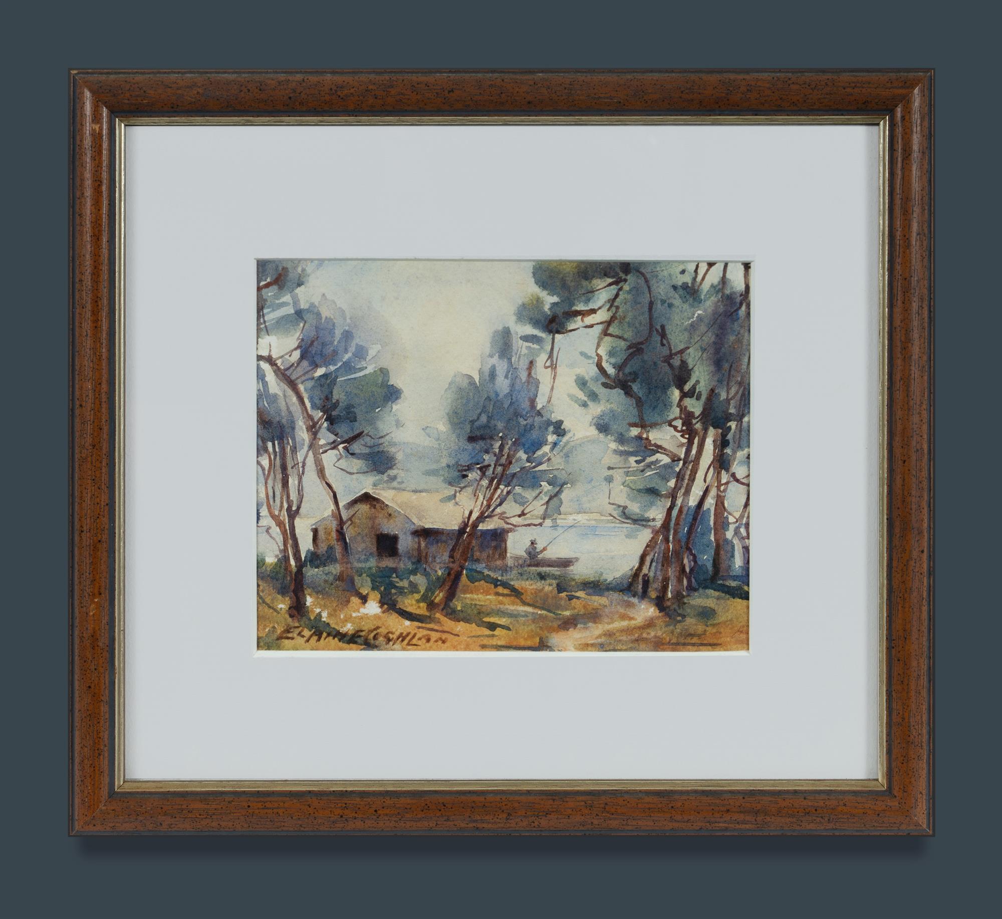 COGHLAN, Elaine (1897-1989) Boathouse and Fisherman W/Clr 12x15.5cm PROVENANCE: Belinda Foy, great niece of the artist.Estimate $80-150