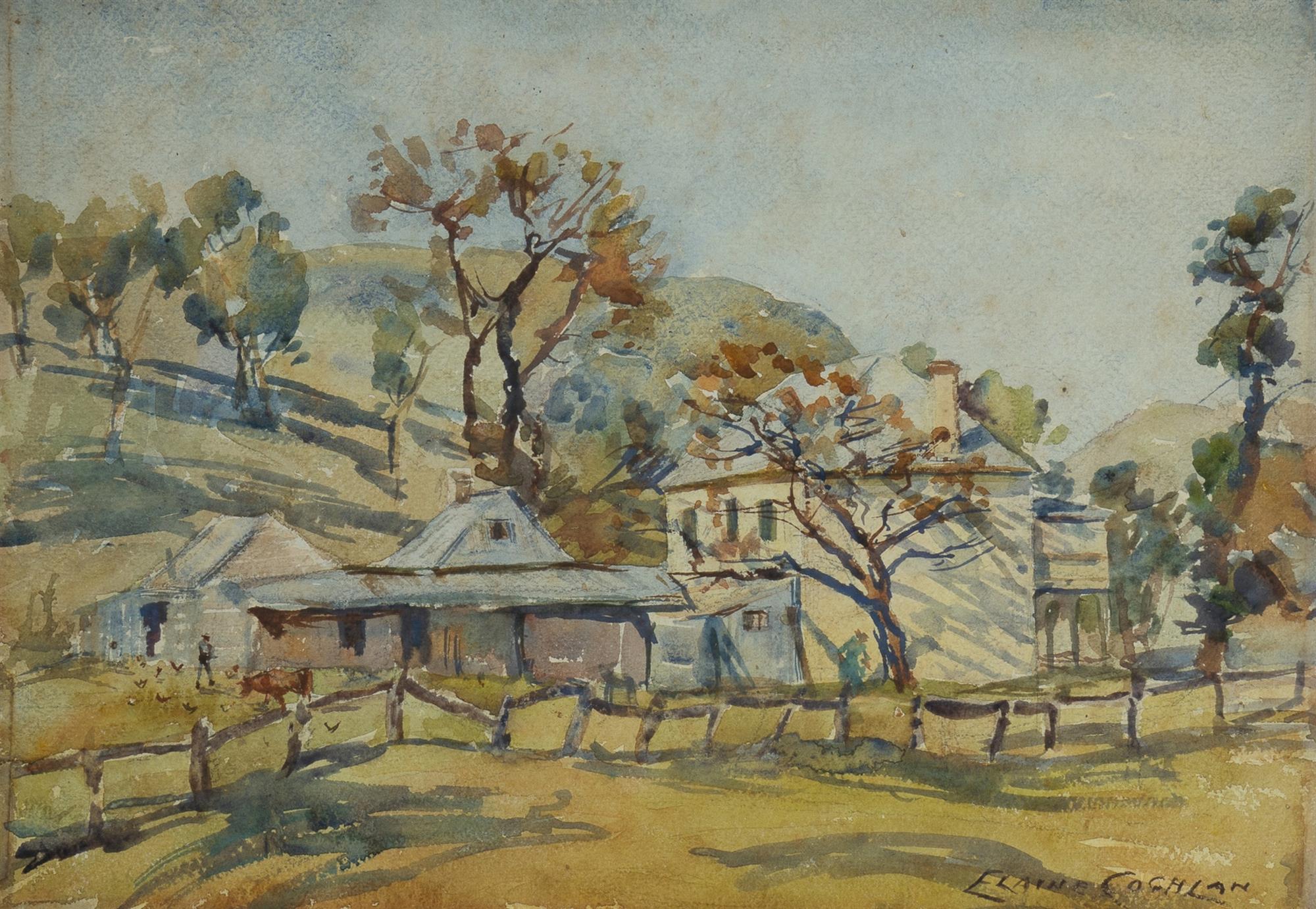 COGHLAN, Elaine (1897-1989) (2) 'Brookside, Picton, N.S.W,' with original artist's label verso (28x39cm); & 'Tumut, N.S.W.' (24.5x28cm) W/Clr (2) PROVENANCE: Belinda Foy, great niece of the artist.Estimate $150-250