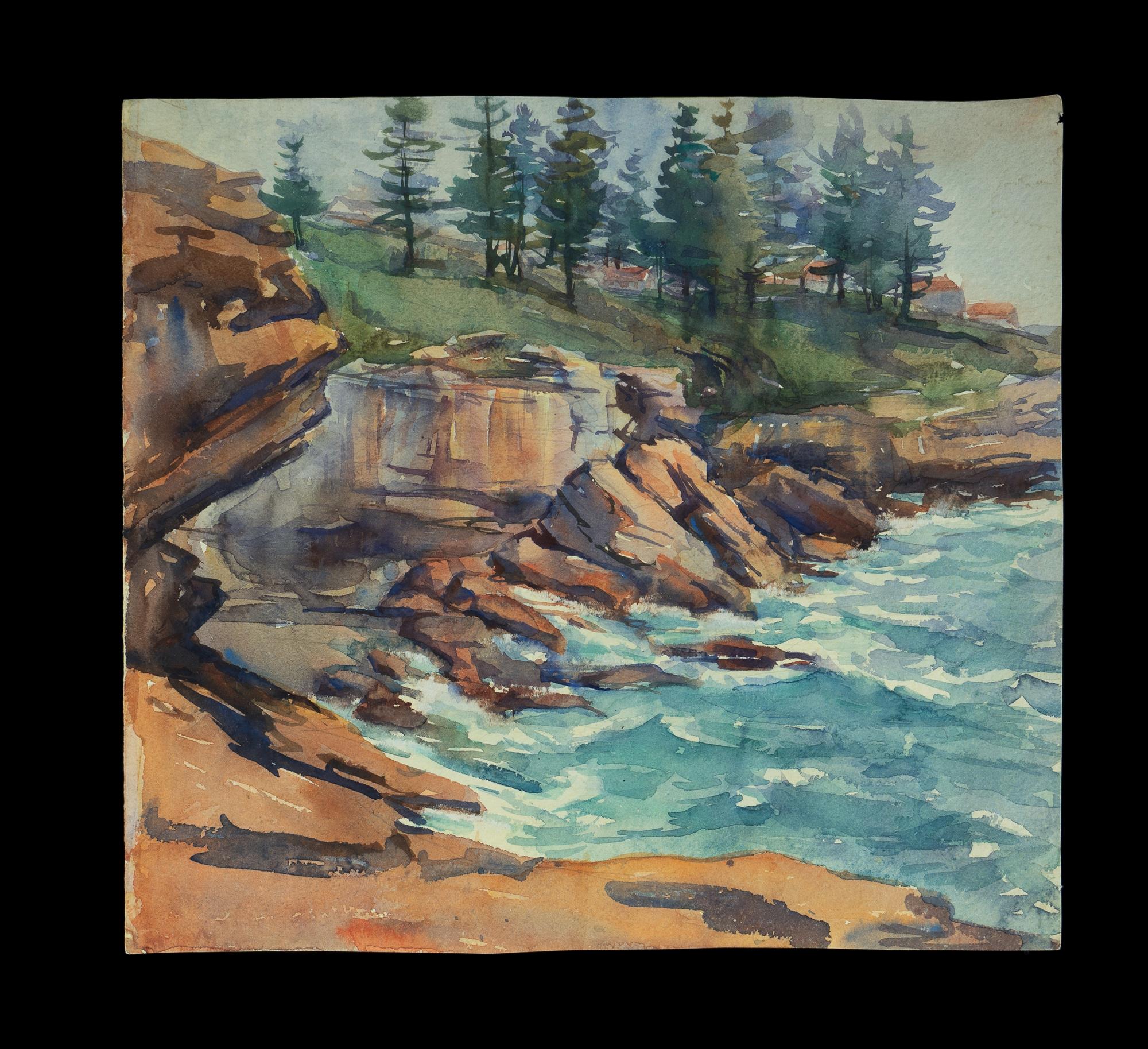 COGHLAN, Elaine (1897-1989) Coastal Landscape, possibly Kiama N.S.W. Unsigned W/Clr 27x29.5cm PROVENANCE: Belinda Foy, great niece of the artist.Estimate $80-150