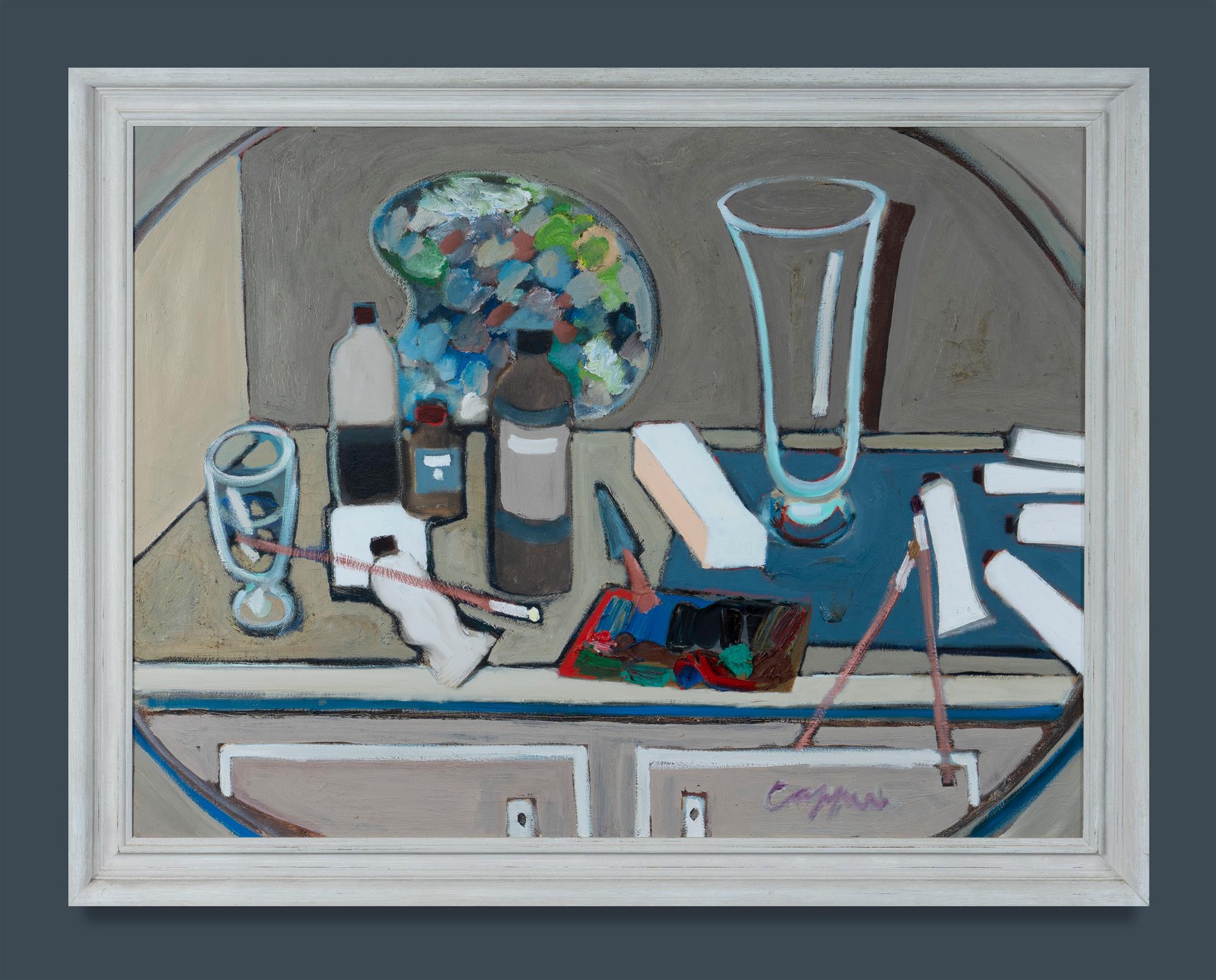 CAPPER, Christopher (b.1951) 'Studio Interior,' 1987. Rex Irwin Art Dealer, Sydney, label verso. Oil on Canvas 75x100cm PROVENANCE: Kreimer & Green, Sydney (original invoice supplied).Estimate $400-700