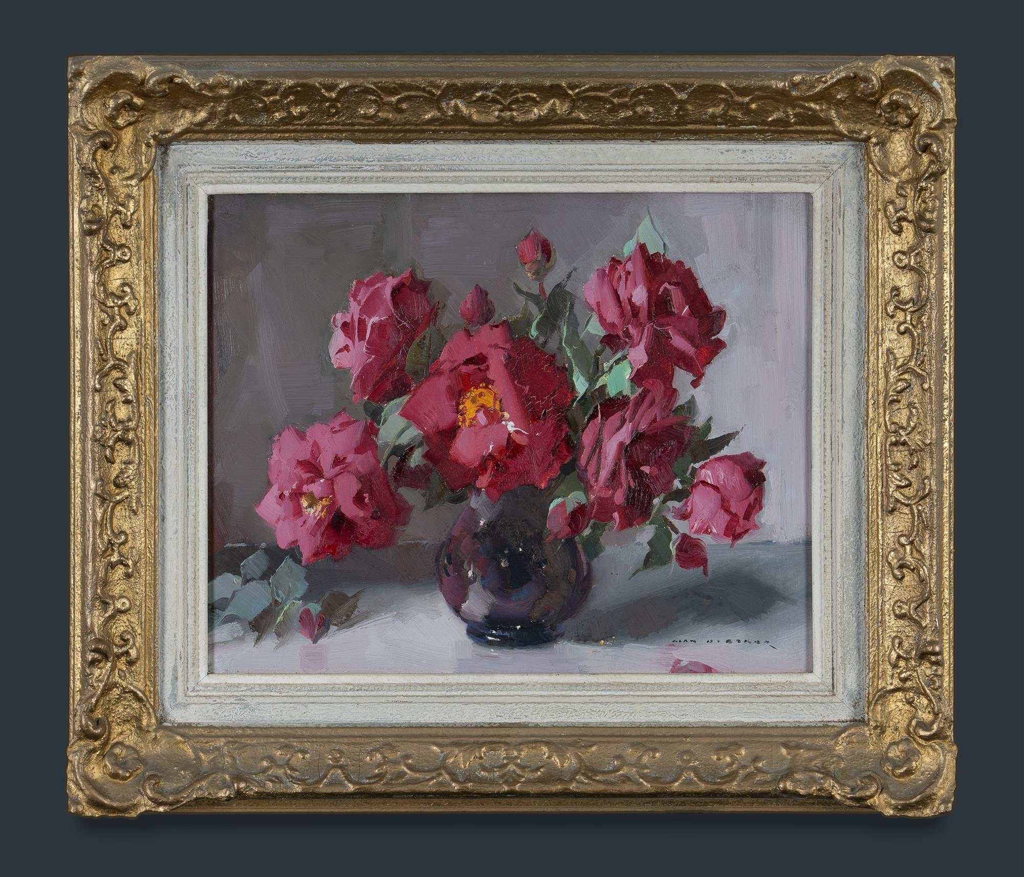 BAKER, Alan Douglas (1914-1987) 'Red Roses' Art Lovers Gallery, Sydney, label verso. Oil on Board 29.5x37cmEstimate $700-1,200