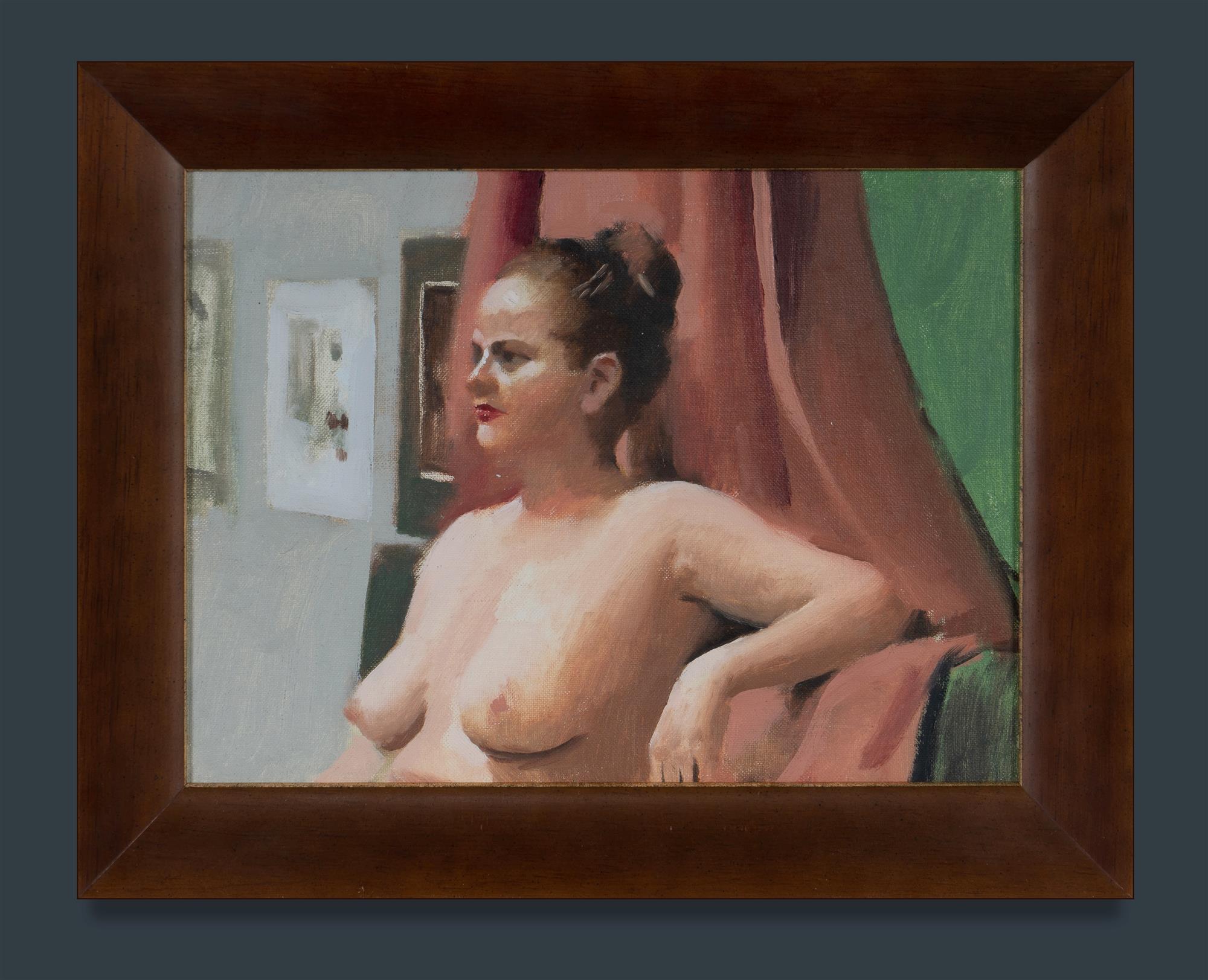 LEASON, Percy (1889-1959) Nude Study, c.1956. Unsigned, but accompanied by letter of authenticity outlining provenance. Oil on Canvas Board 22x29.5cmEstimate $400-600