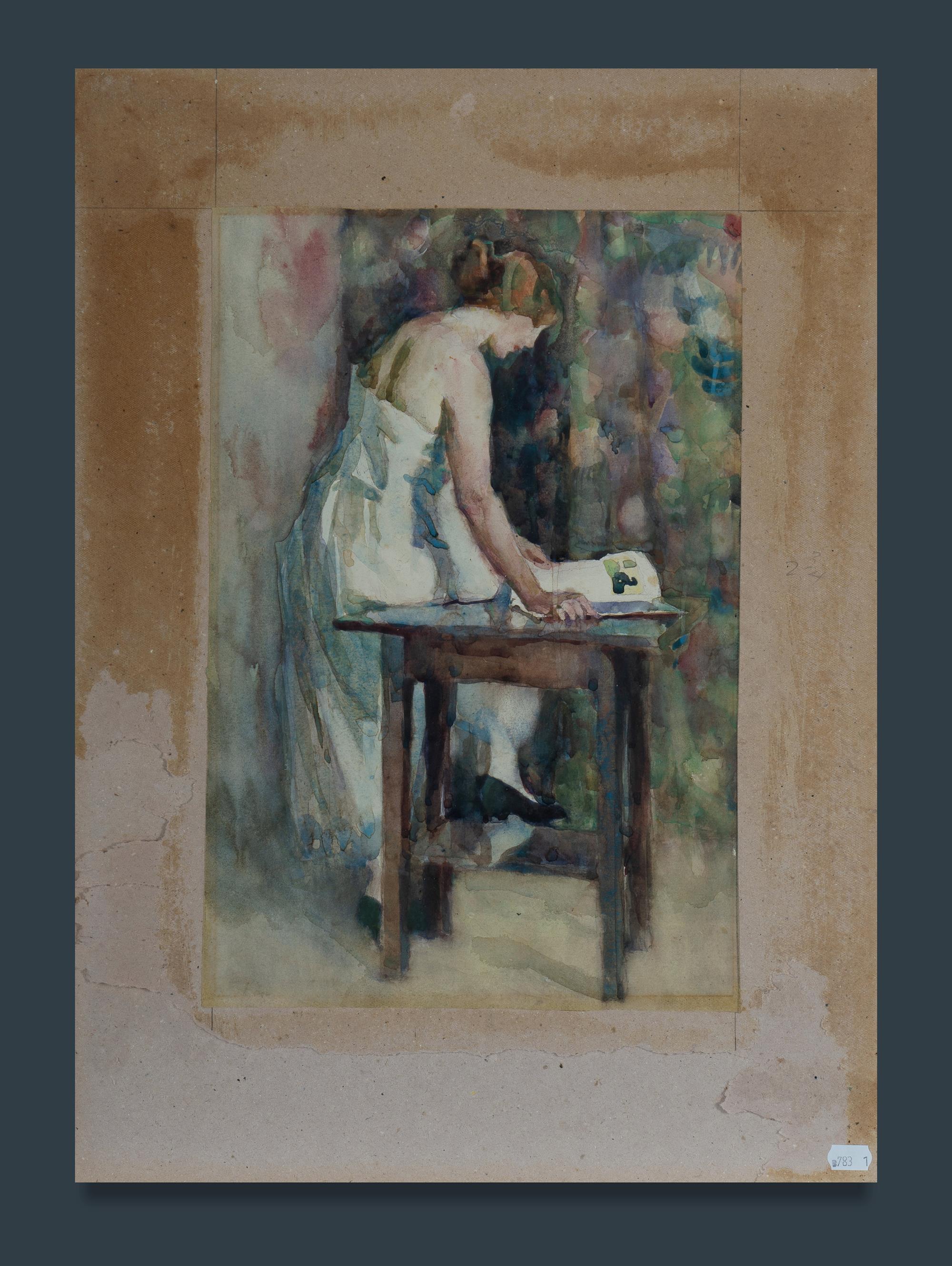 Artist Unknown, Young Woman in Gown Reading, c.1910/20s. Faint signature lower left - Florence Rodway? W/Clr 38.5x25.5cmEstimate $500-1,000