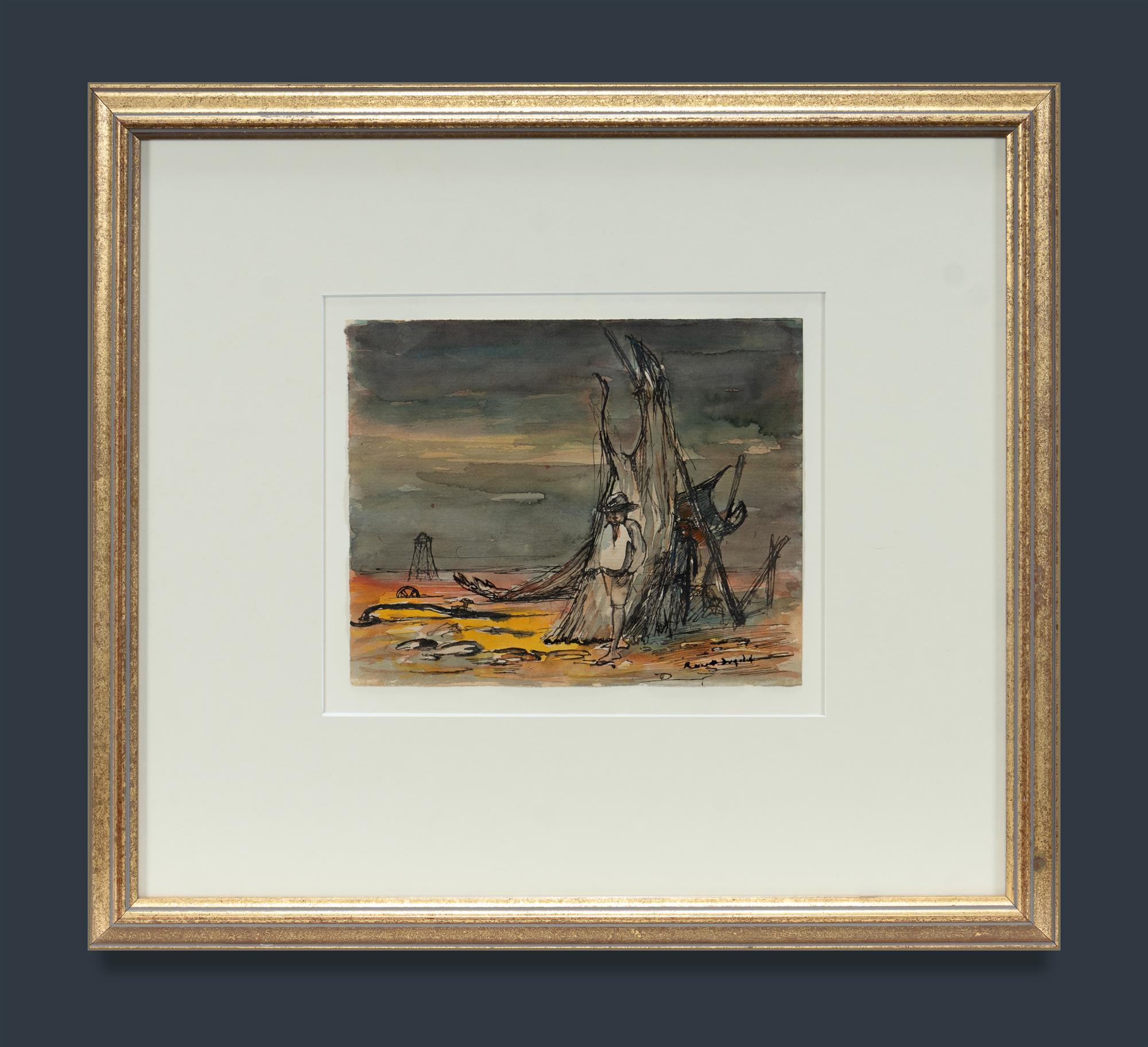 DRYSDALE, Russell (1912-1981) Desert Camp Signed in full 'Russell Drysdale' lower right. Ink & W/Clr 15.5x19.5cm