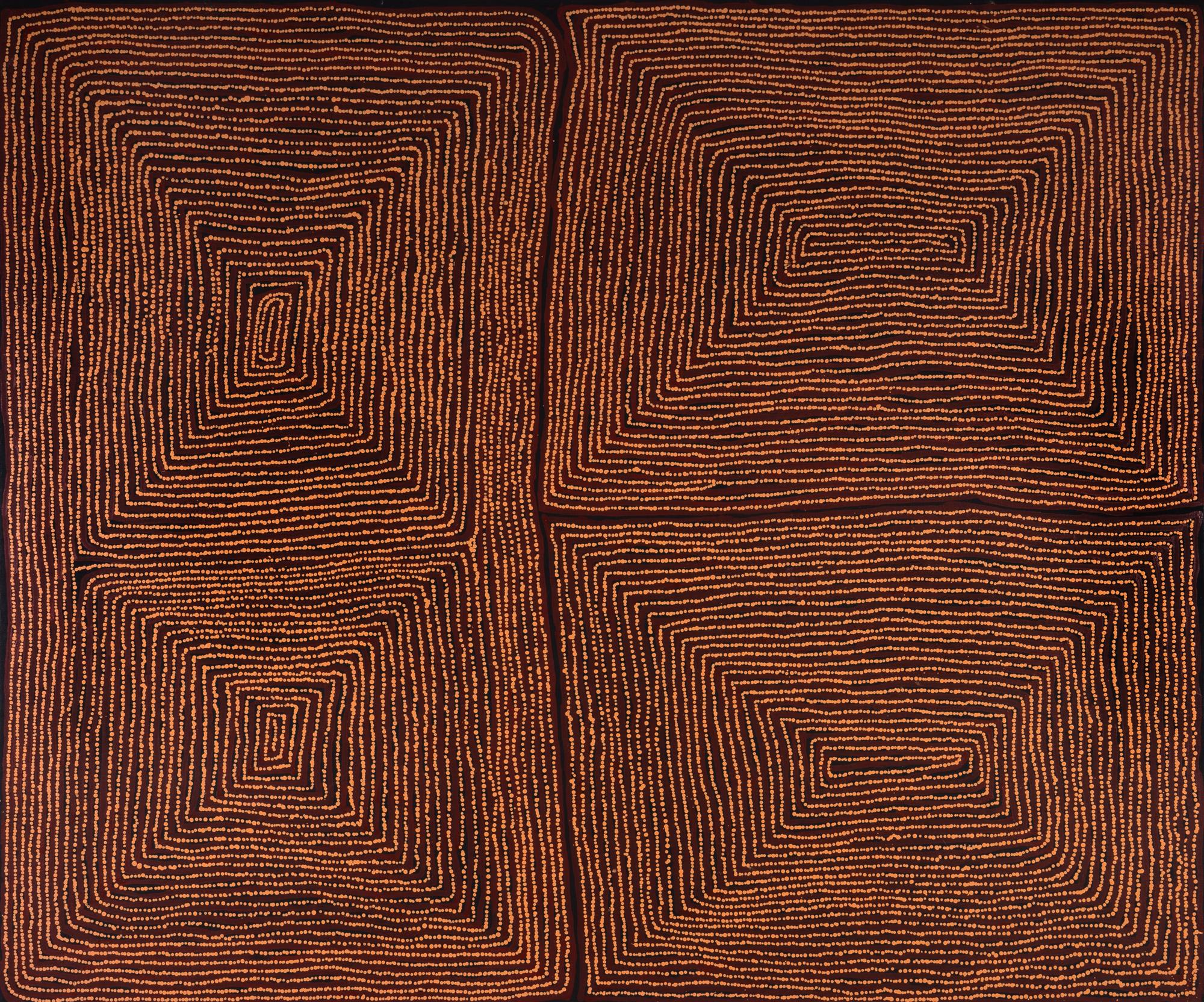 TJAPALTJARRI, Thomas (Aboriginal born c.1964) 'Tingari Men at Tjuntulpul Rockhole Site,' 2006. Acrylic on Linen 183x153cm