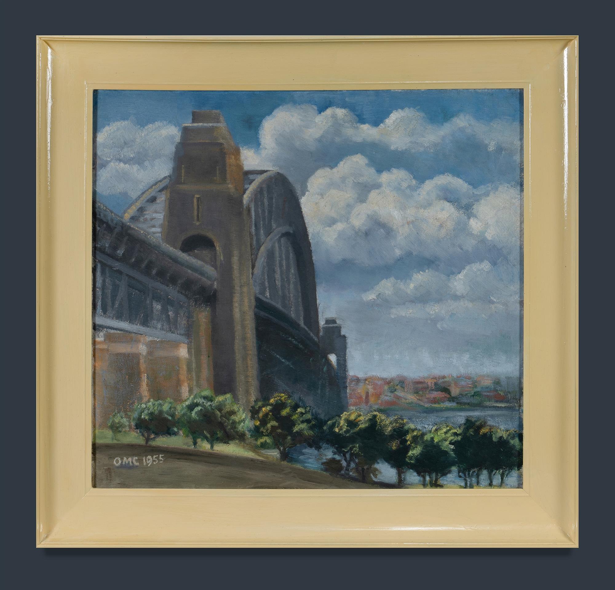 CHANDLER, Olive M Sydney Harbour Bridge, 1955. Oil on Canvas on Board 46x50cm PROVENANCE: Seeing Sydney Harbour, Collection of Jim Haynes OAM and Robyn McMillan.Estimate $150-300