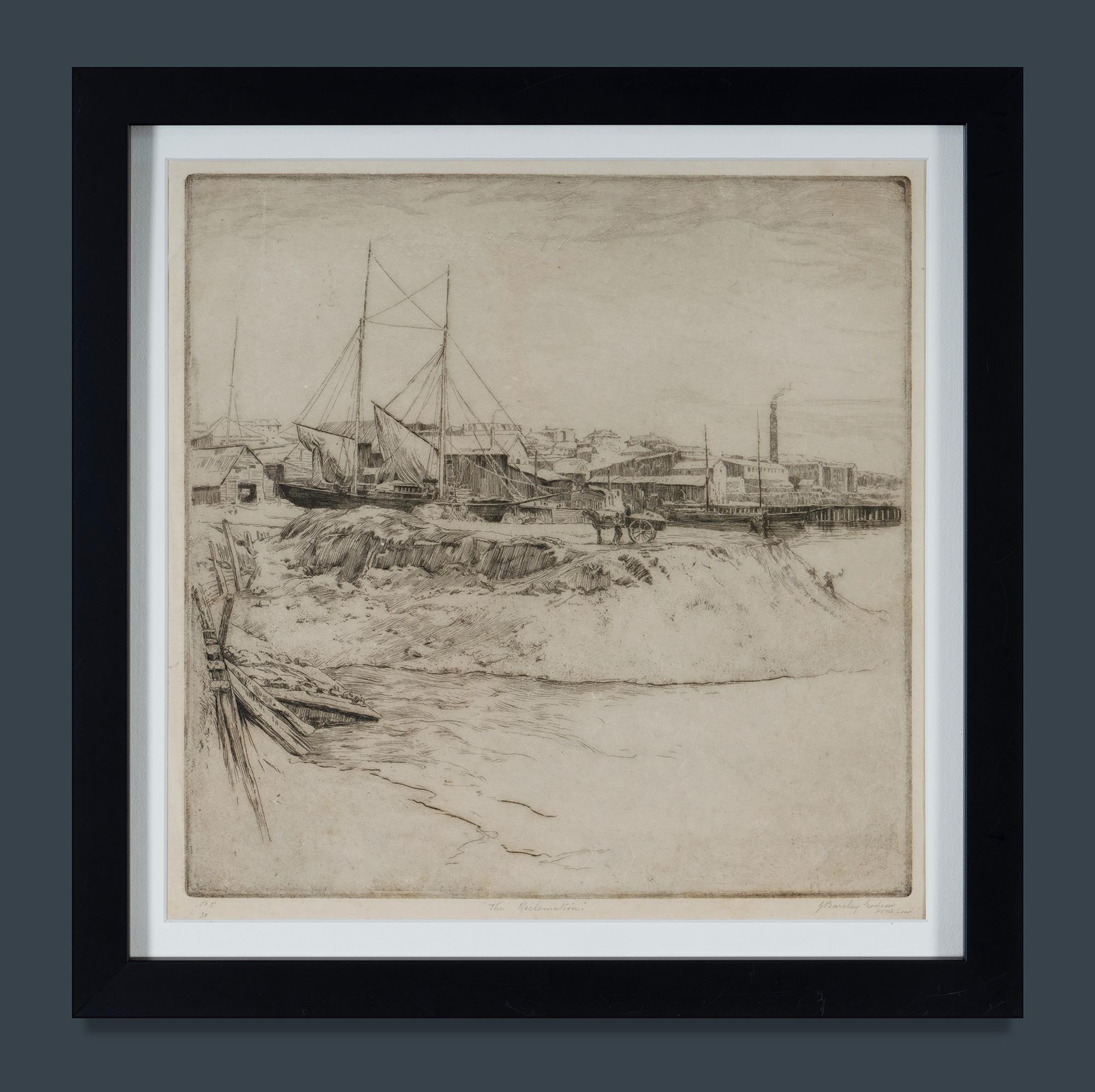 GODSON, John Barclay (1882-1957) 'The Reclamation' Etching 5/30 25x25cm PROVENANCE: Seeing Sydney Harbour, Collection of Jim Haynes OAM and Robyn McMillan.Estimate $80-150