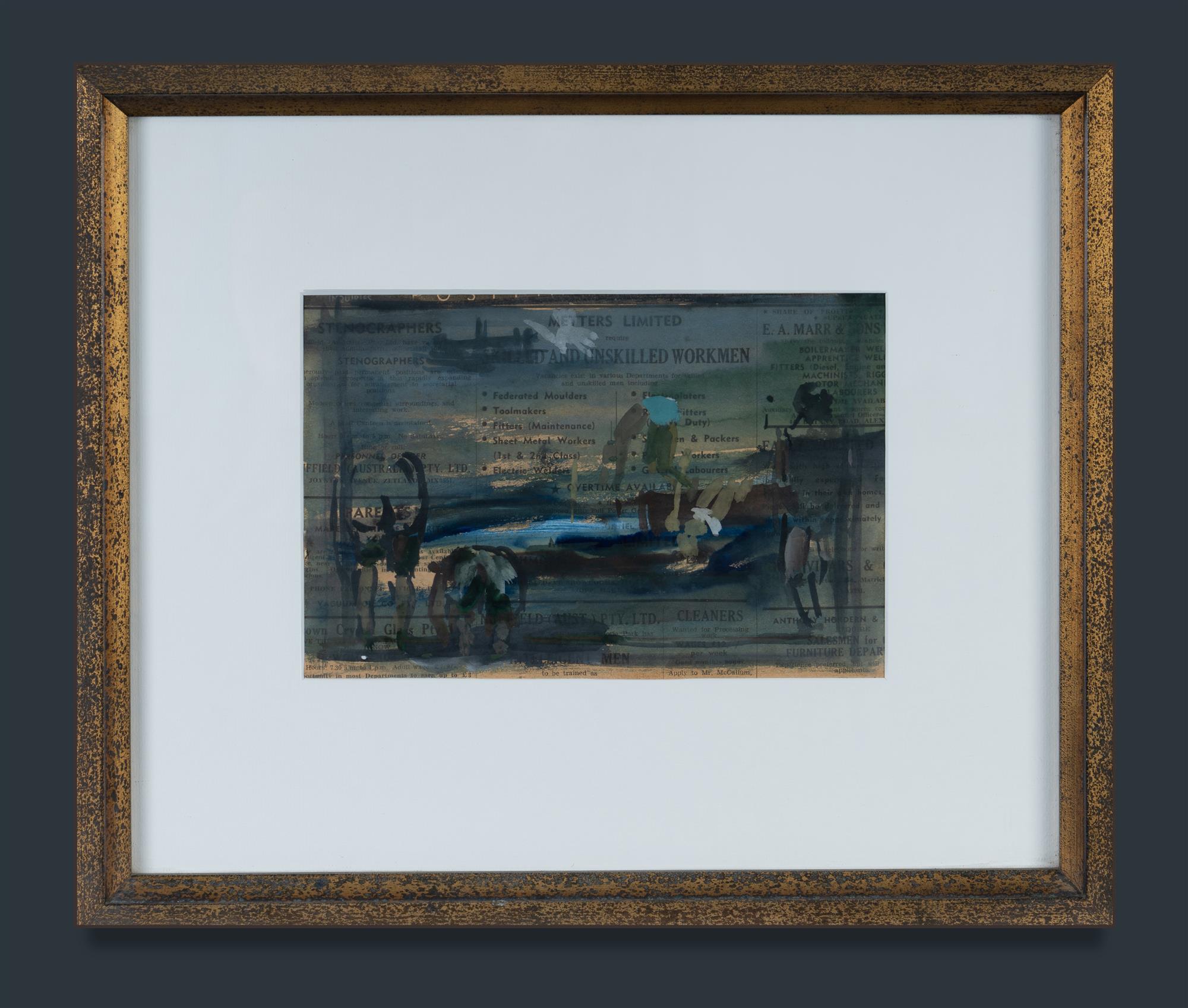 PASSMORE, John (1904-1984) Figures by the Sea, with Man Diving. Unsigned Gouache on Newsprint 16x14cm PROVENANCE: The artist; Lou Klepac collection; private collection, Sydney (acquired from the above 2010).Estimate $800-1,500